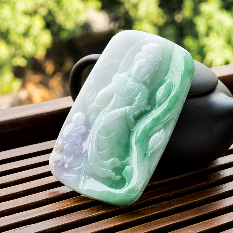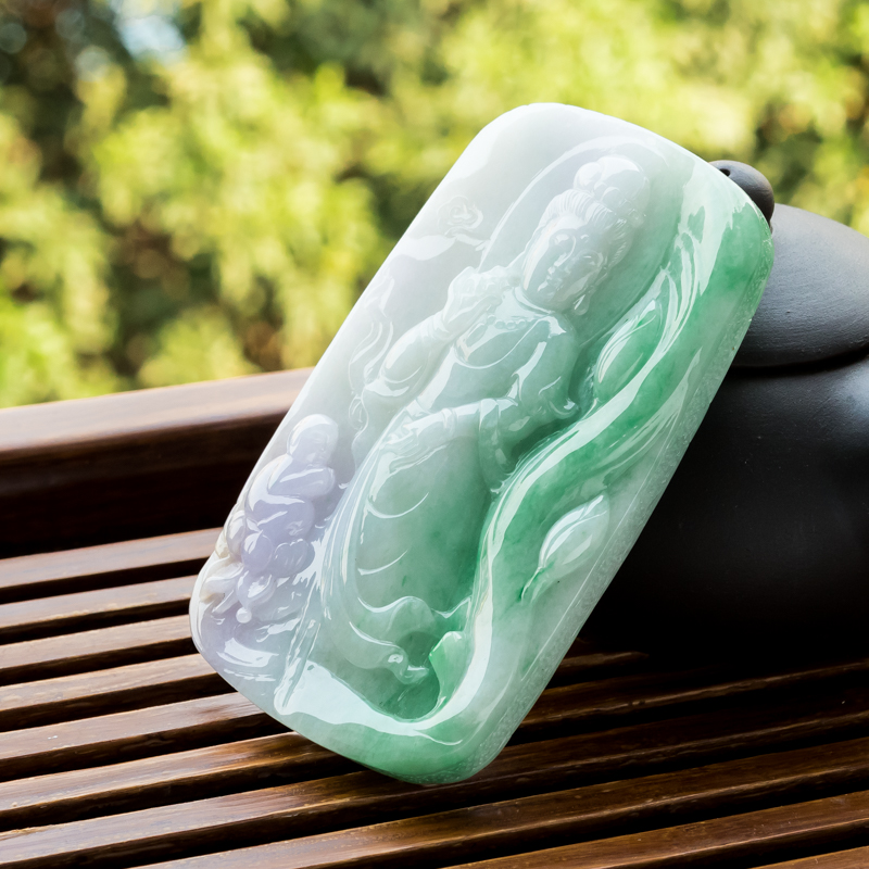 • [名  称] 糯冰种春带彩翡翠送子观音吊坠