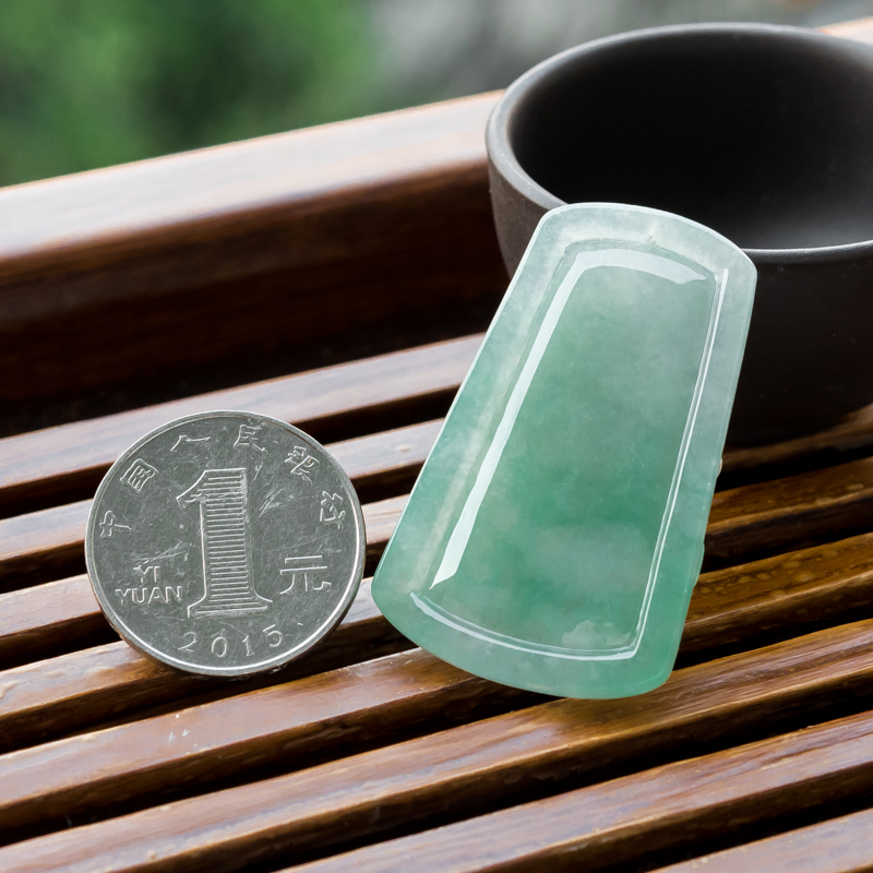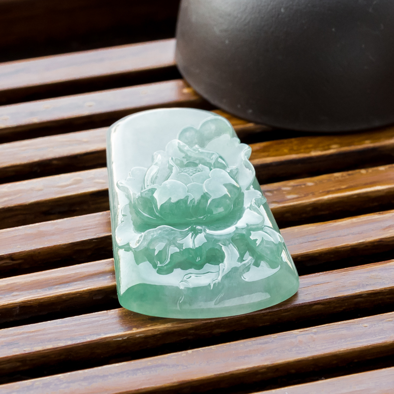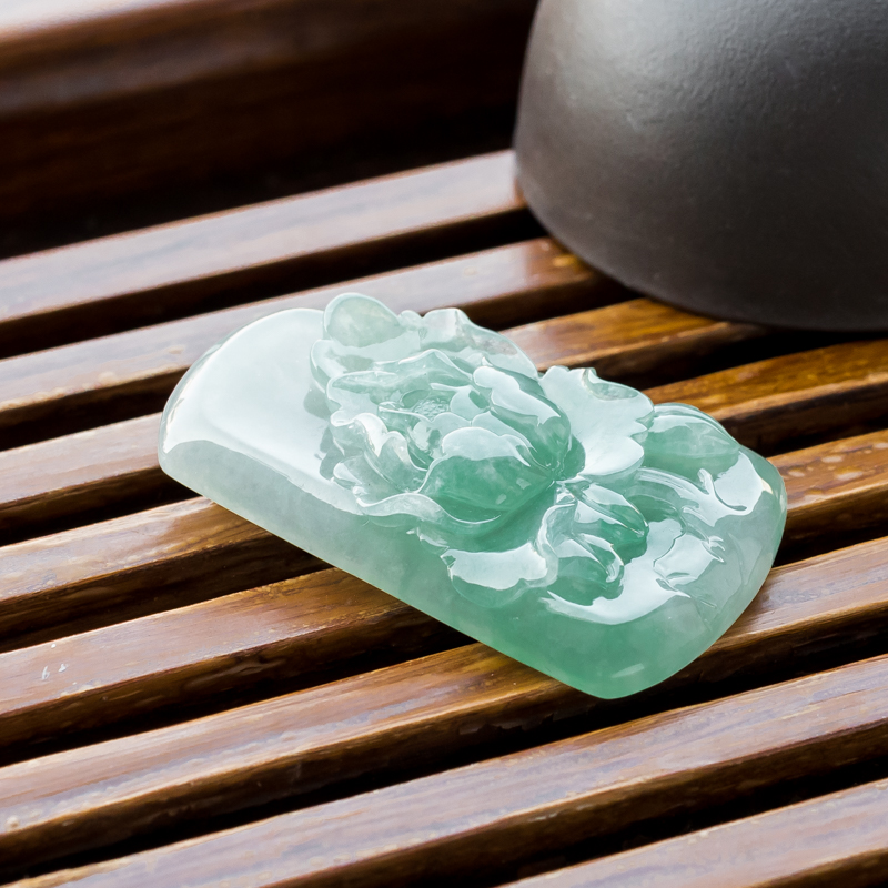 • 糯冰种浅绿翡翠花开富贵吊坠