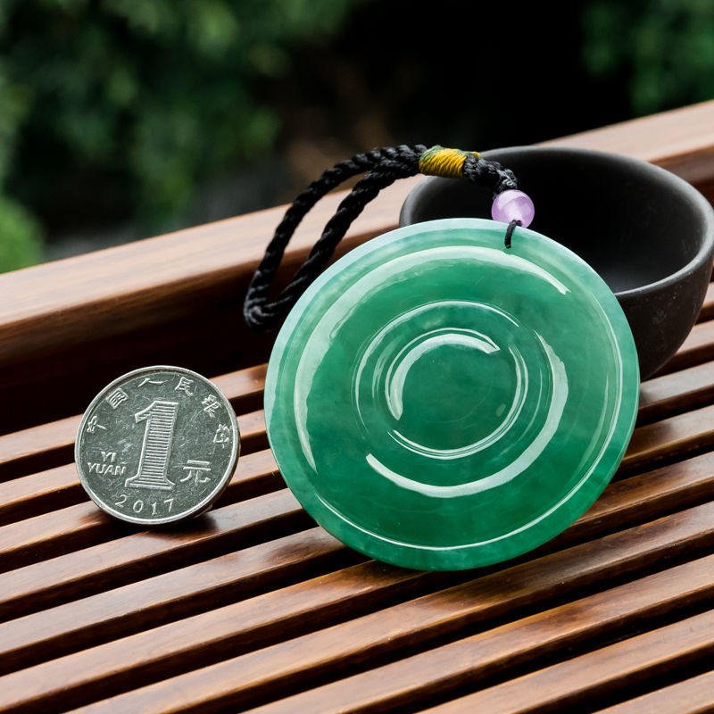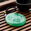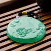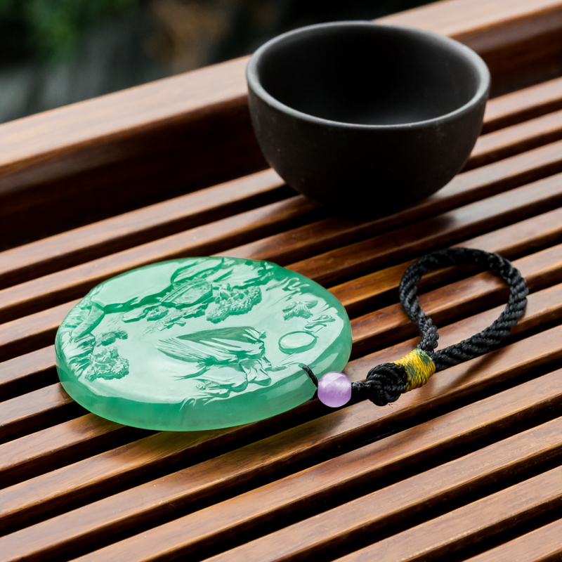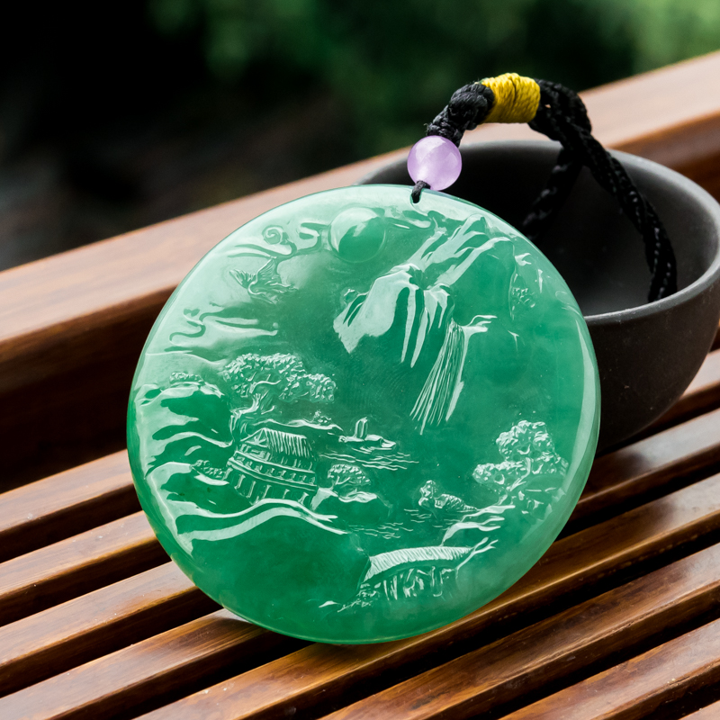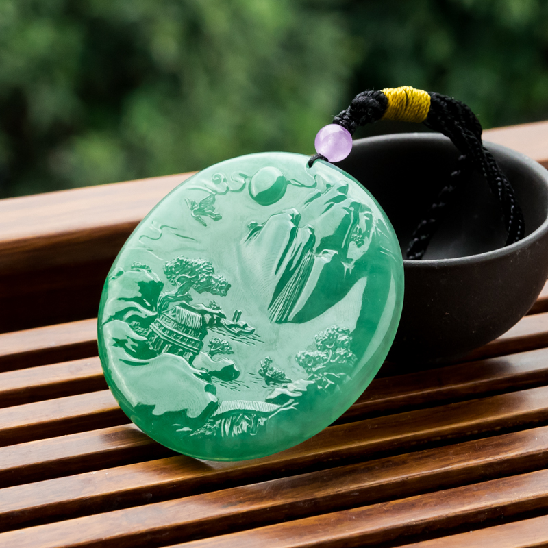 • 糯冰种翠绿翡翠山水意境吊坠