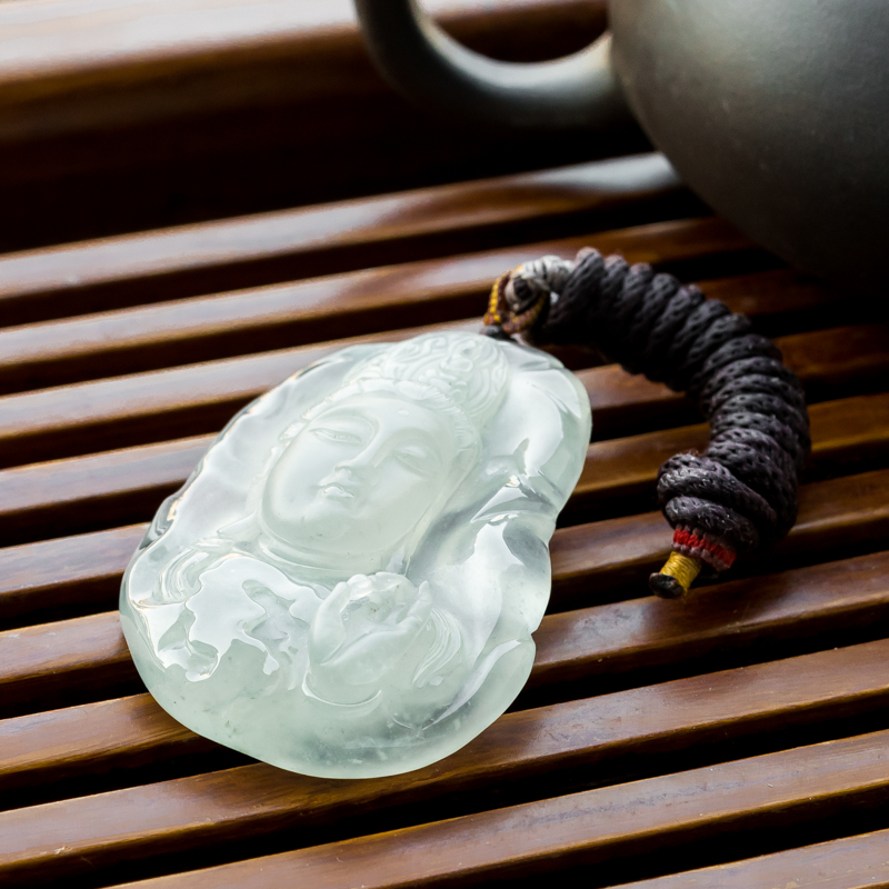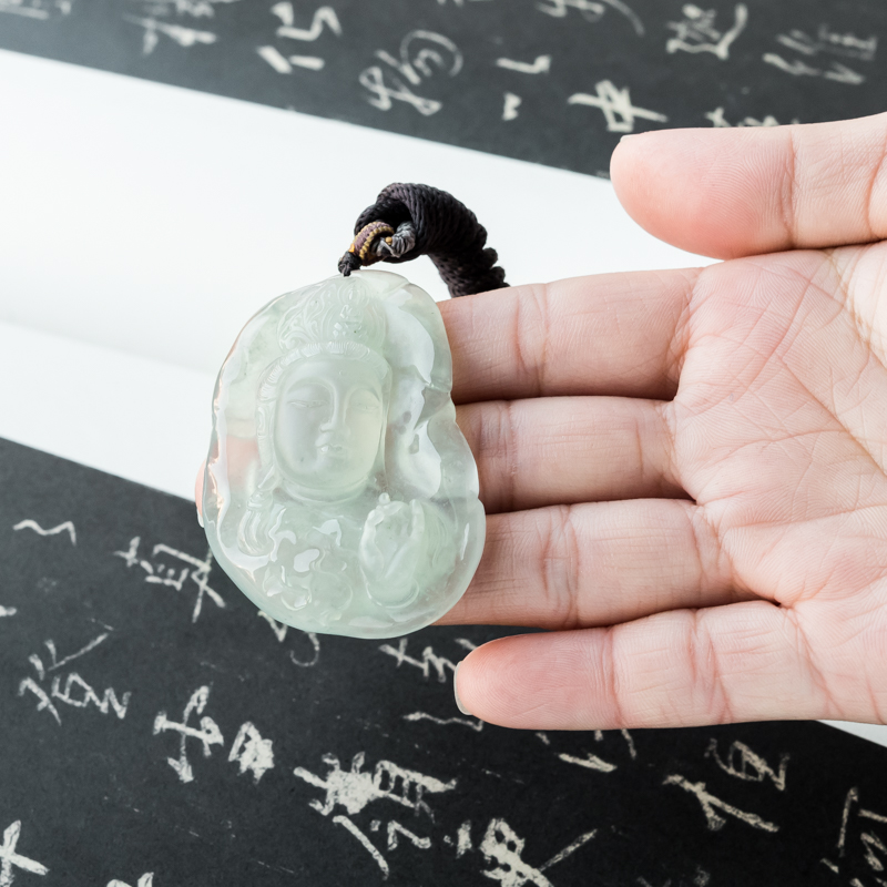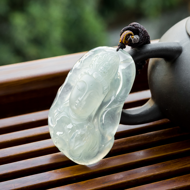 • [名  称] 糯冰种淡晴水翡翠观音吊坠