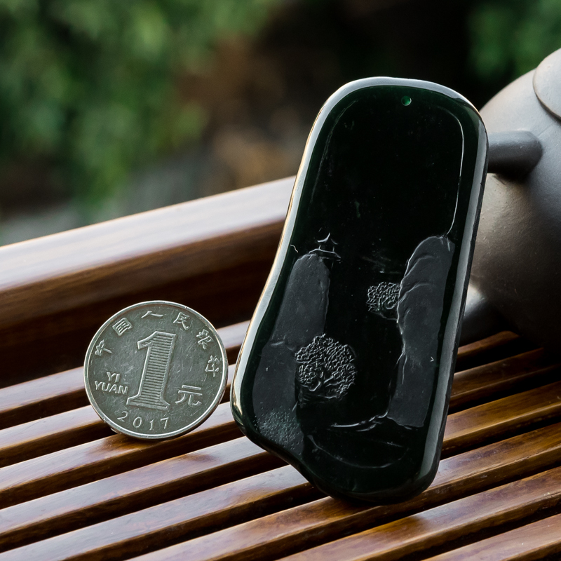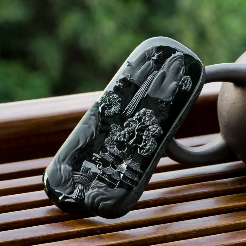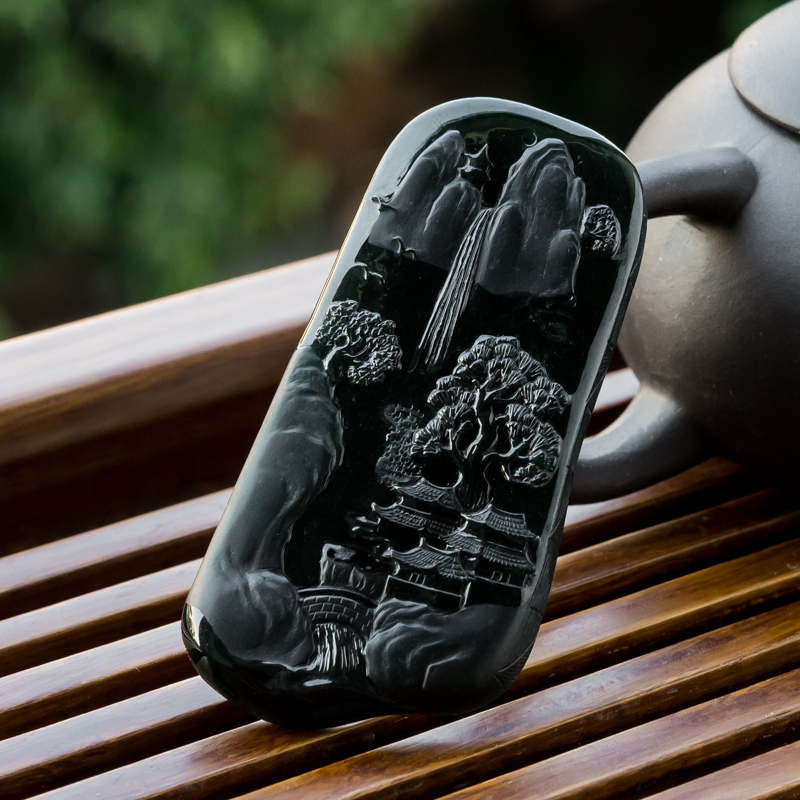 • 糯冰种墨翠山水意境吊坠