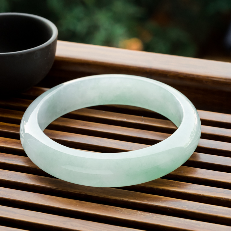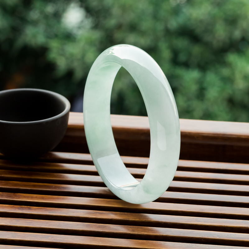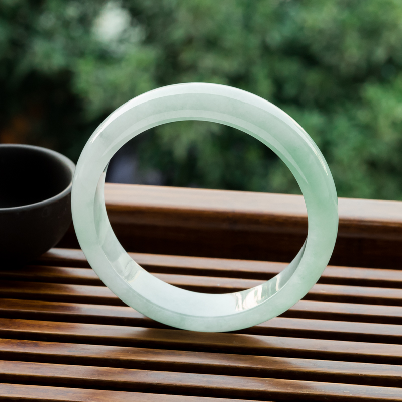 • 62.5mm糯冰种浅绿翡翠平安镯