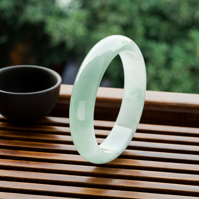 • [名  称] 62.5mm糯冰种浅绿翡翠平安镯