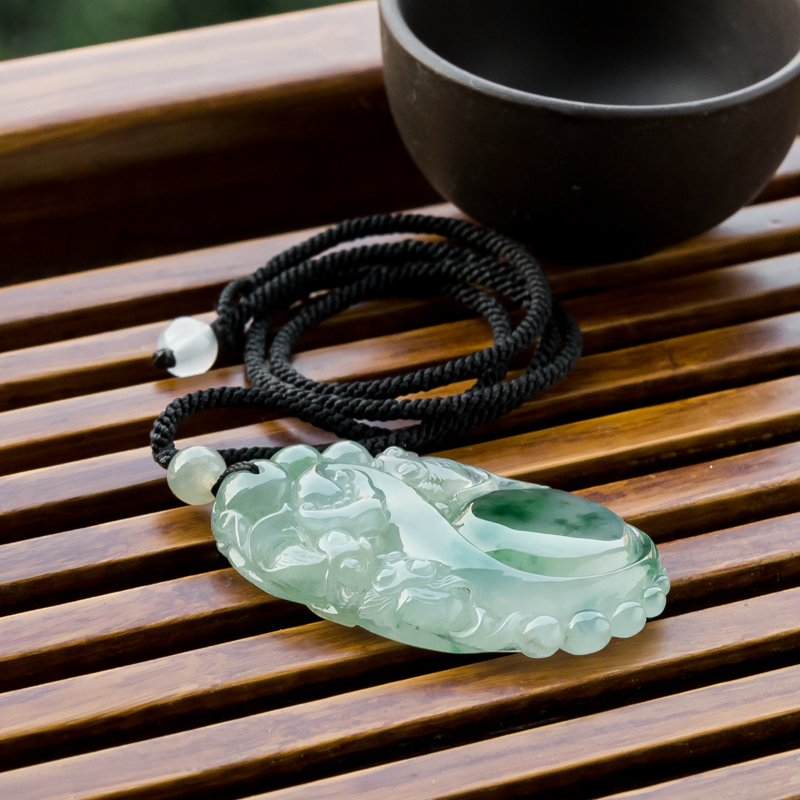 • [名  称] 糯冰种飘花翡翠如意吊坠