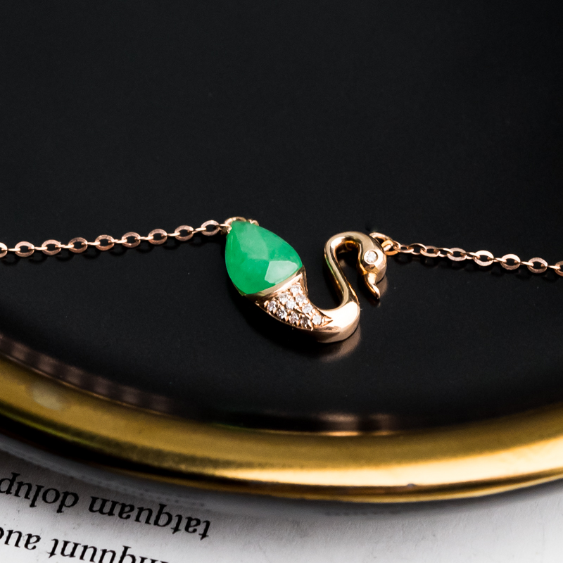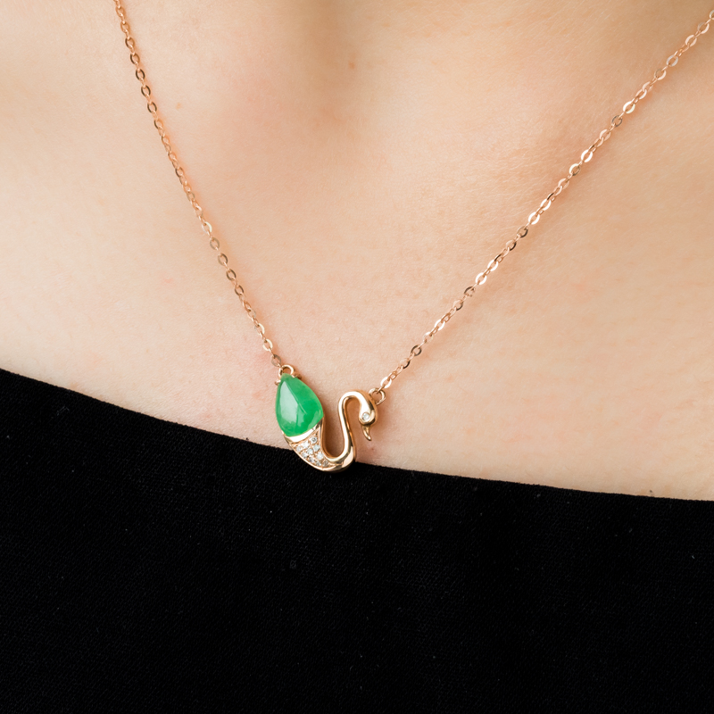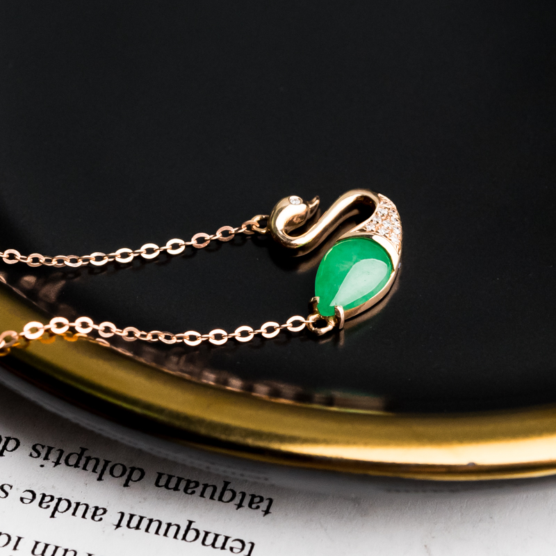 • [名  称] 18K糯冰种浅绿翡翠天鹅项链