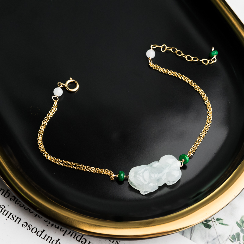 • [名  称] 14K糯冰种翡翠貔貅手链