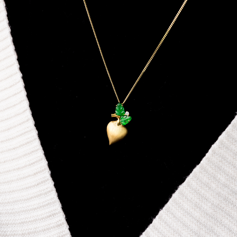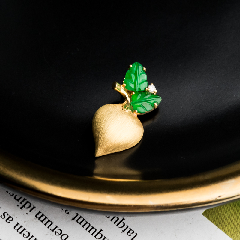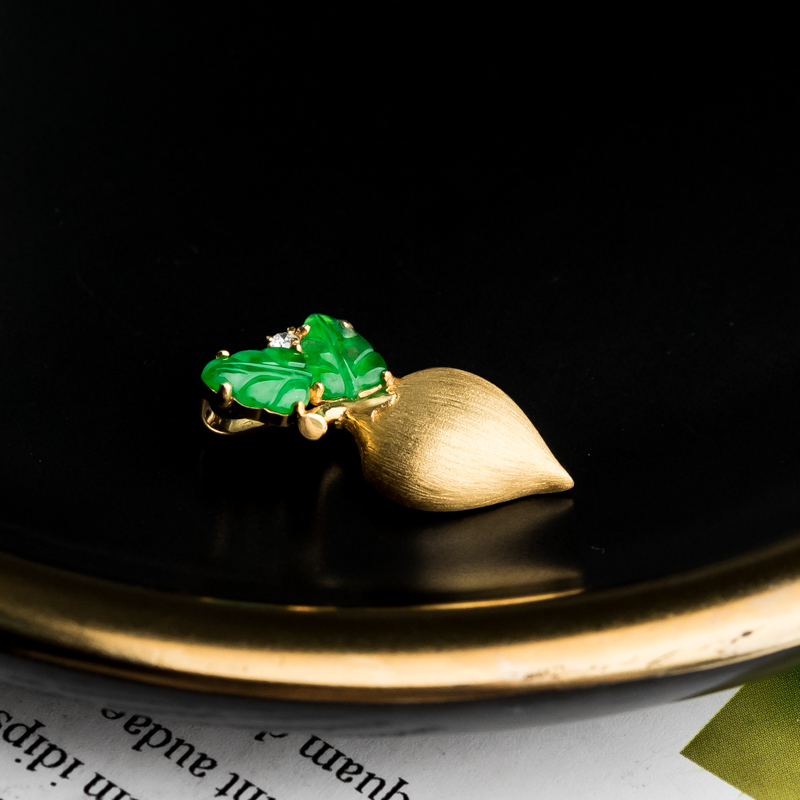 • 18K糯冰种翠绿翡翠萝卜吊坠