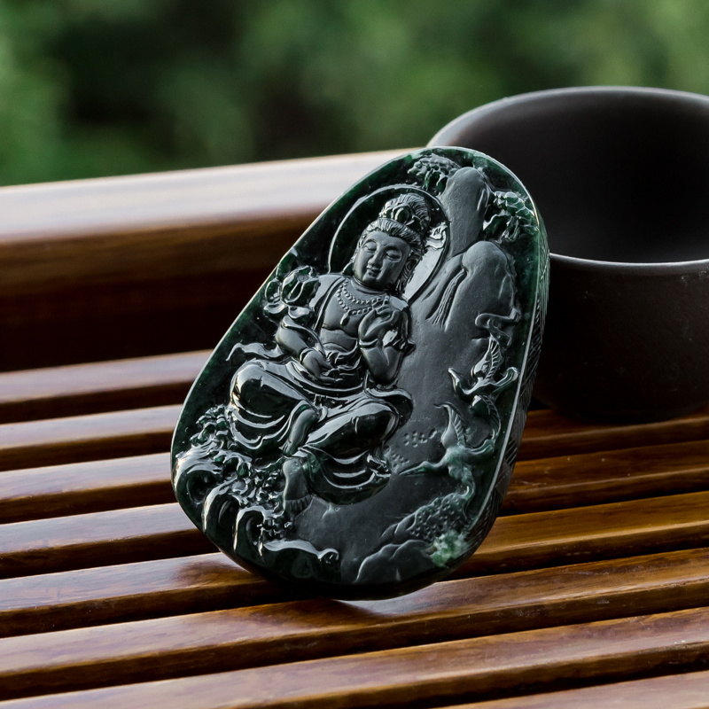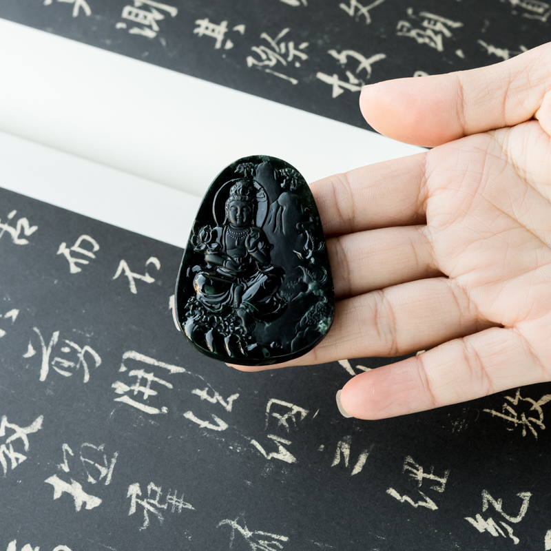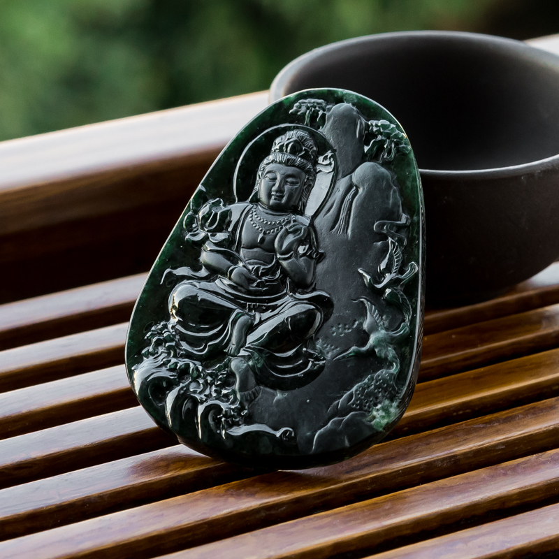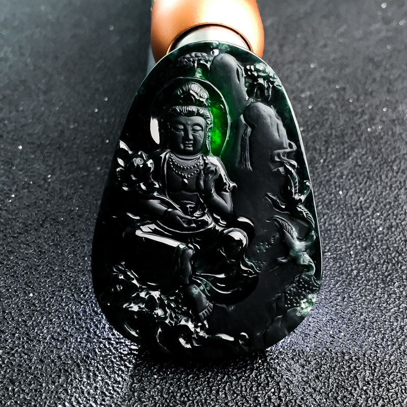 • [名  称] 糯冰种墨翠大势至菩萨吊坠