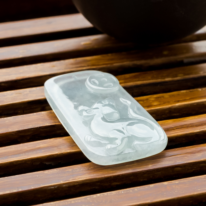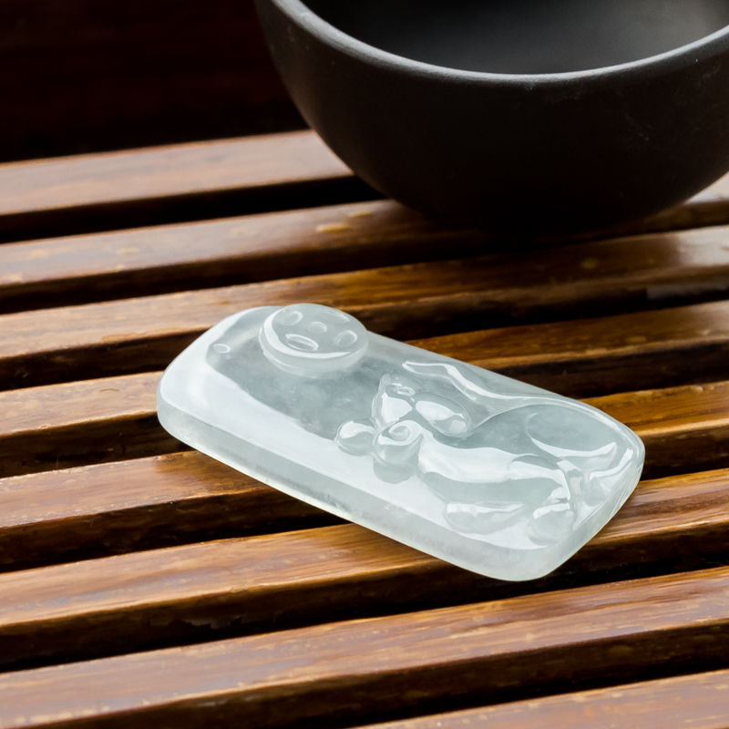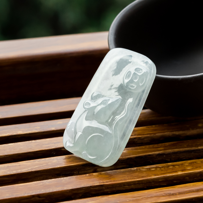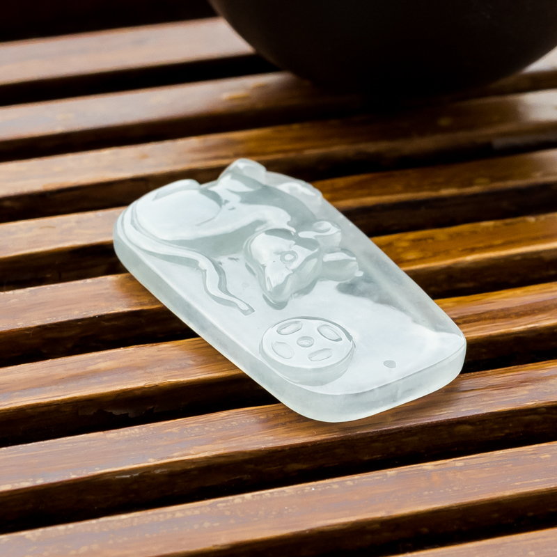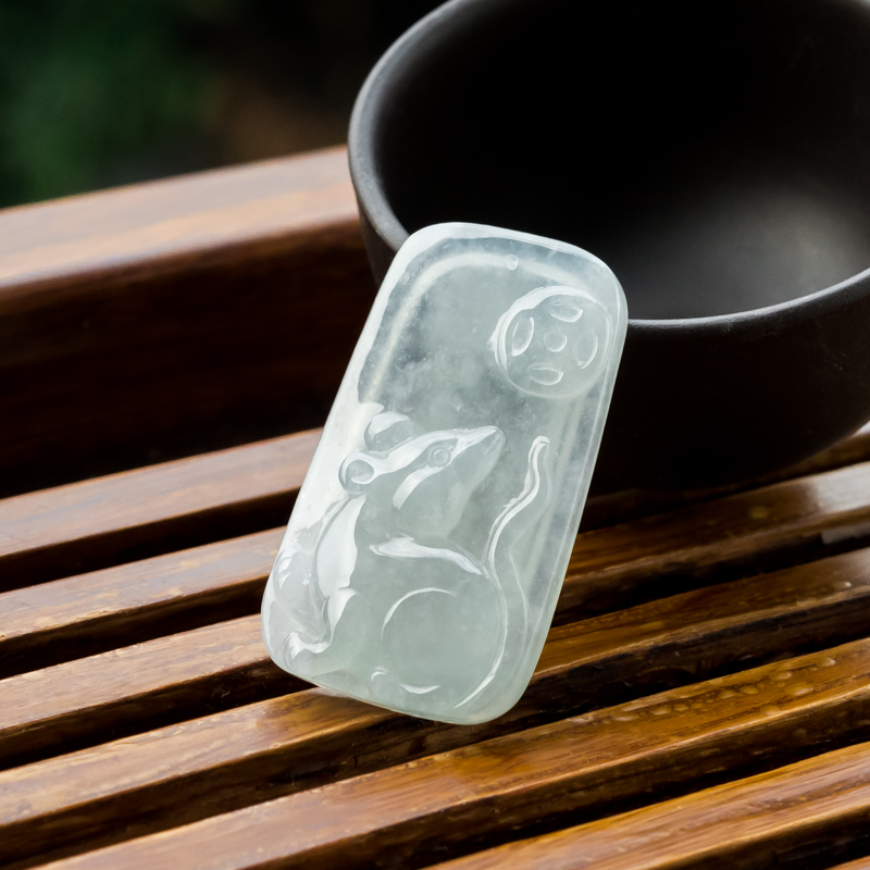 • 糯冰种淡晴水翡翠福鼠吊坠