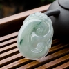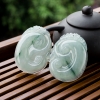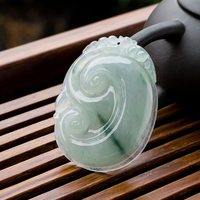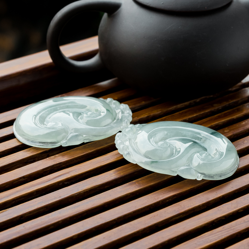 • 糯冰种飘花翡翠如意吊坠(一对)