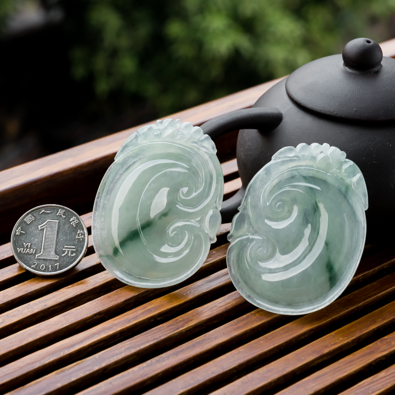 • [名  称] 糯冰种飘花翡翠如意吊坠(一对)