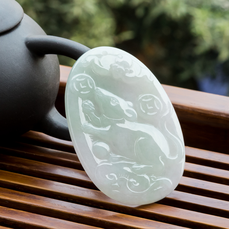 • [名  称] 糯冰种浅绿翡翠福鼠吊坠