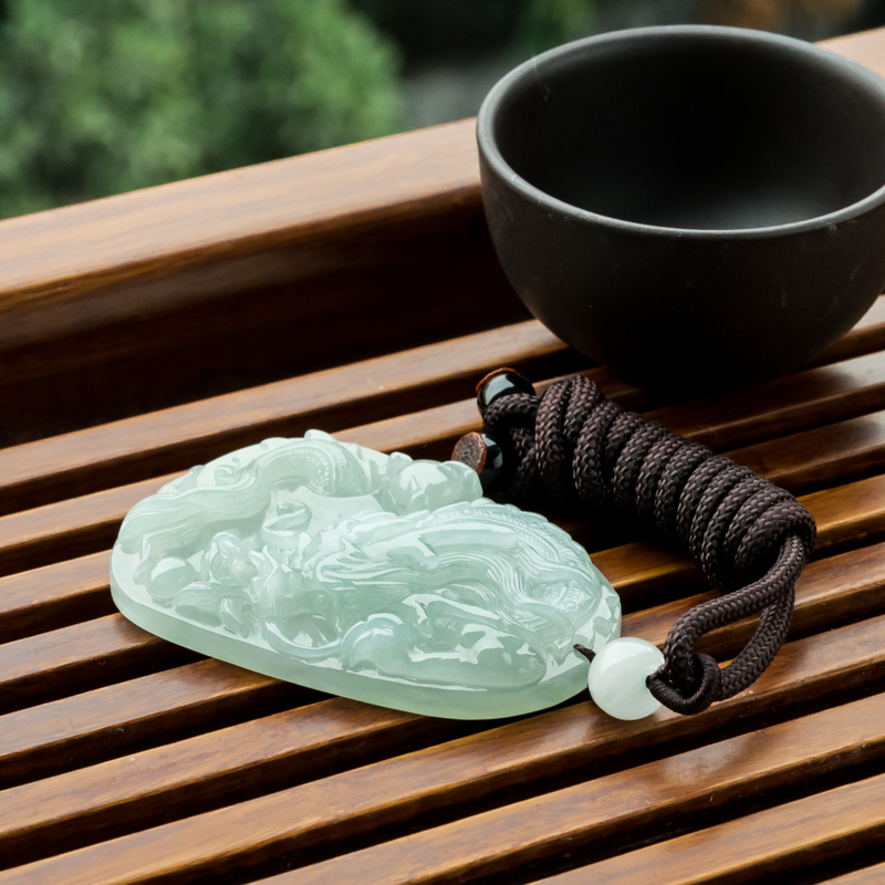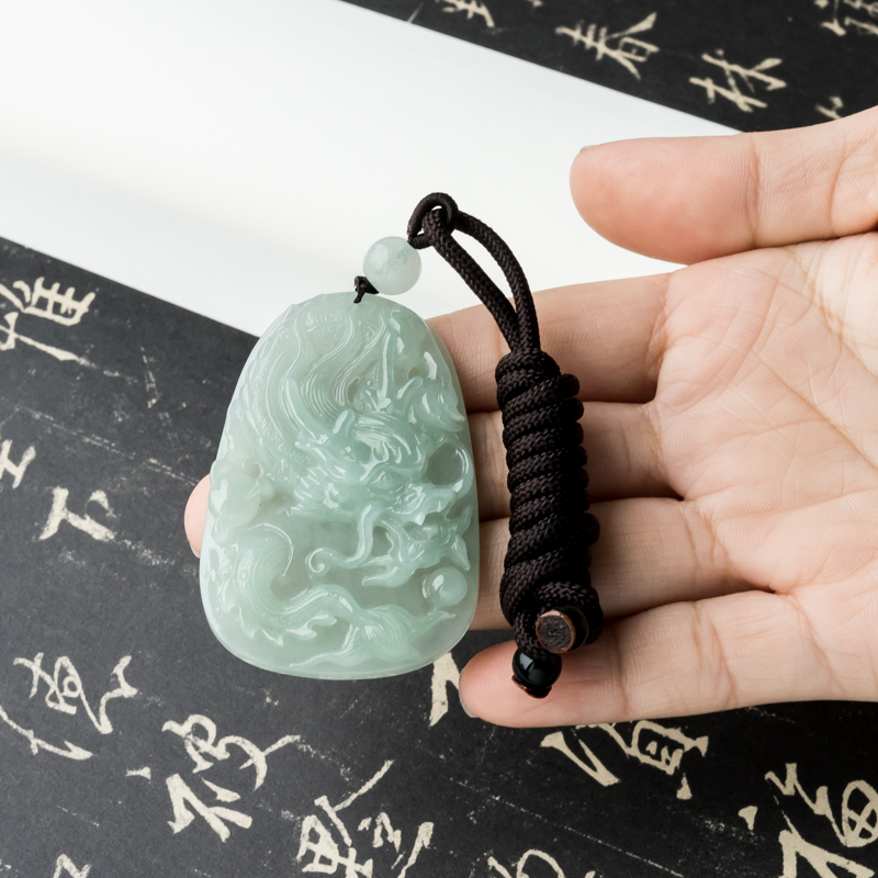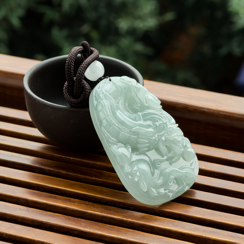 • 糯冰种浅绿翡翠飞龙在天吊坠