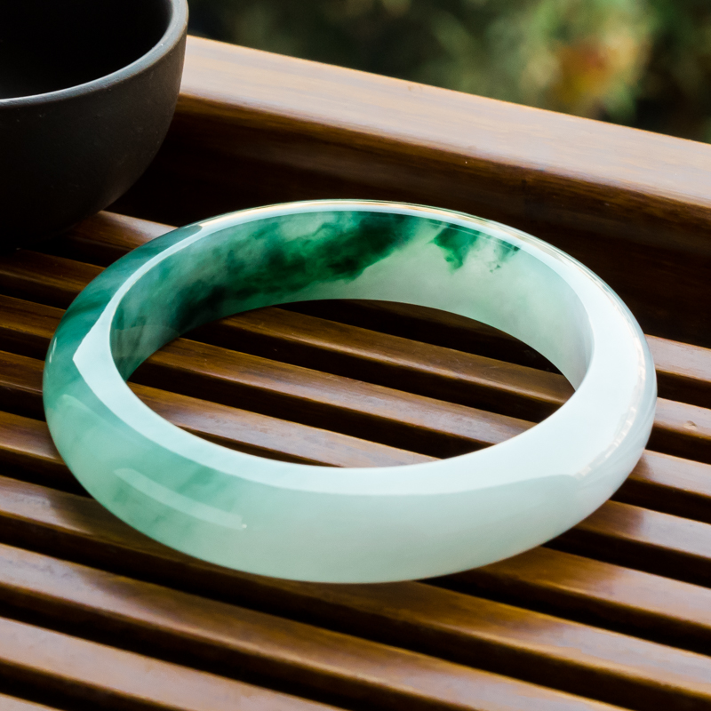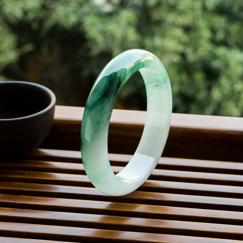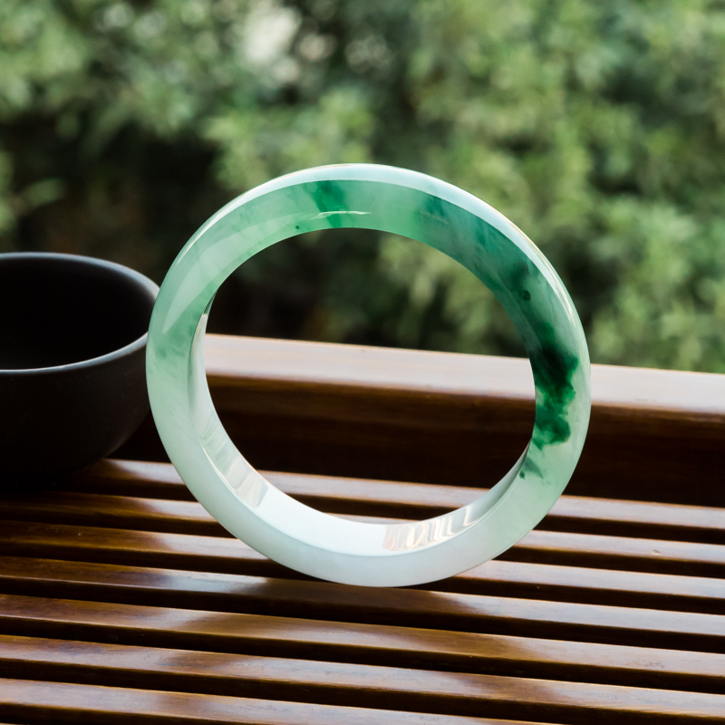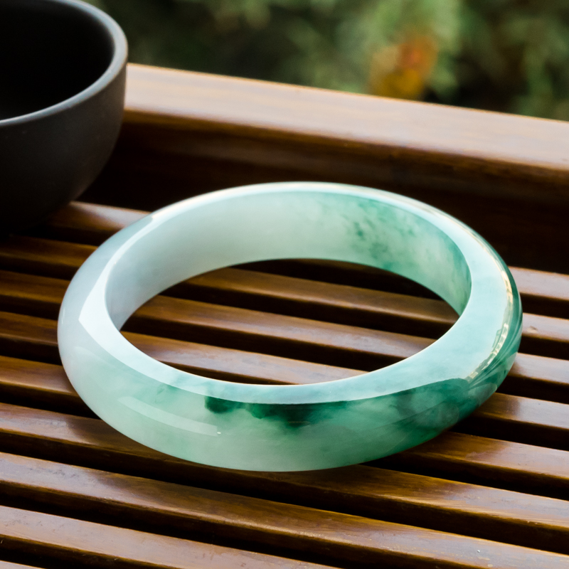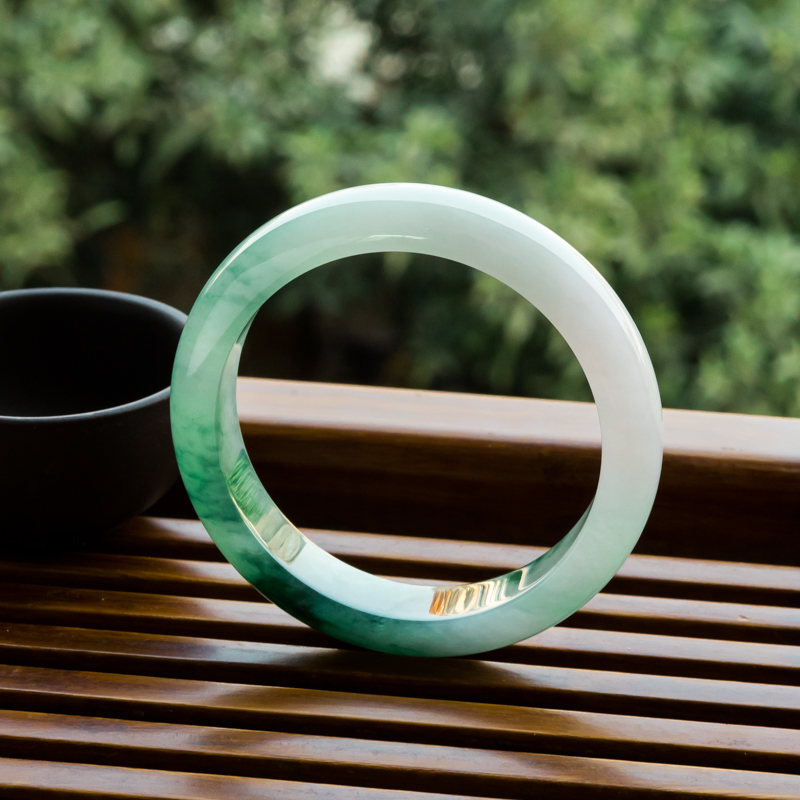 • [名  称] 54.5mm糯冰种飘花翡翠平安镯