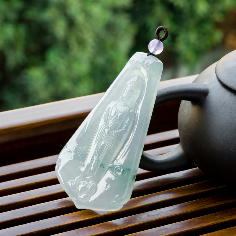 • [名  称] 糯冰种飘花翡翠观音吊坠