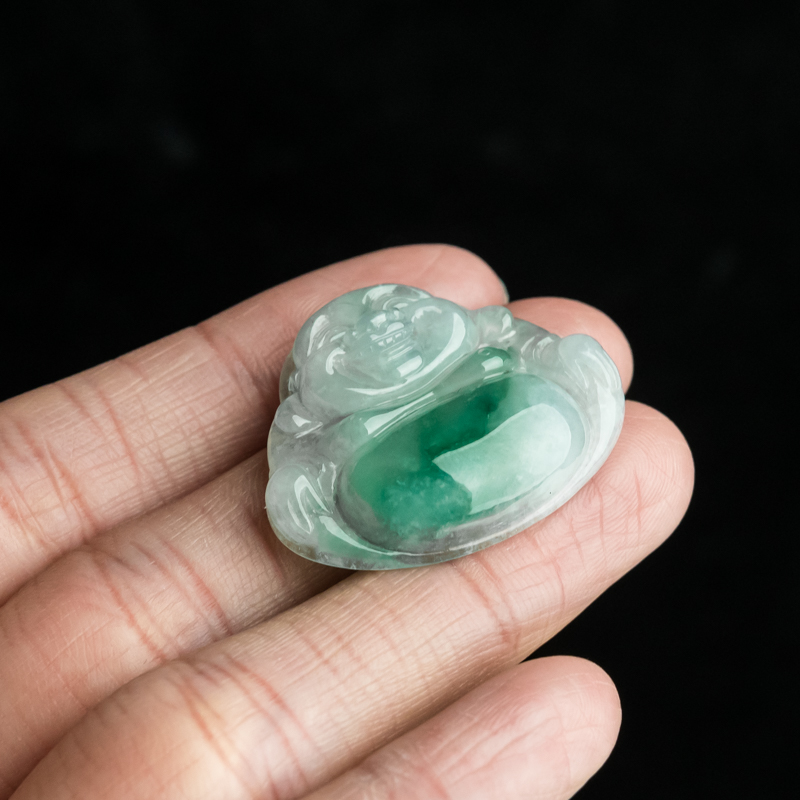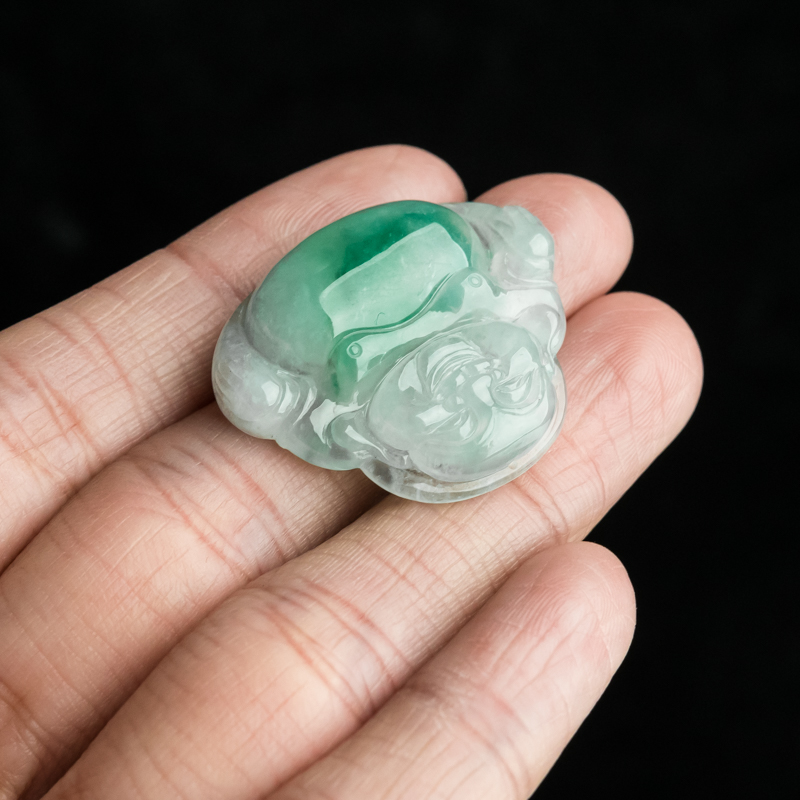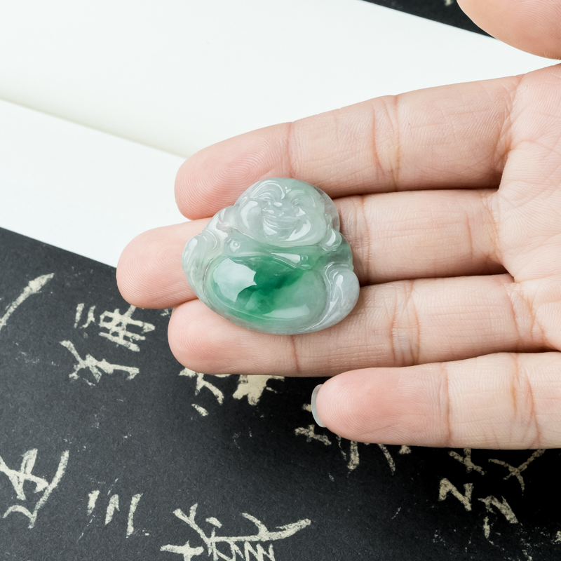 • 糯冰种飘翠翡翠弥勒佛吊坠