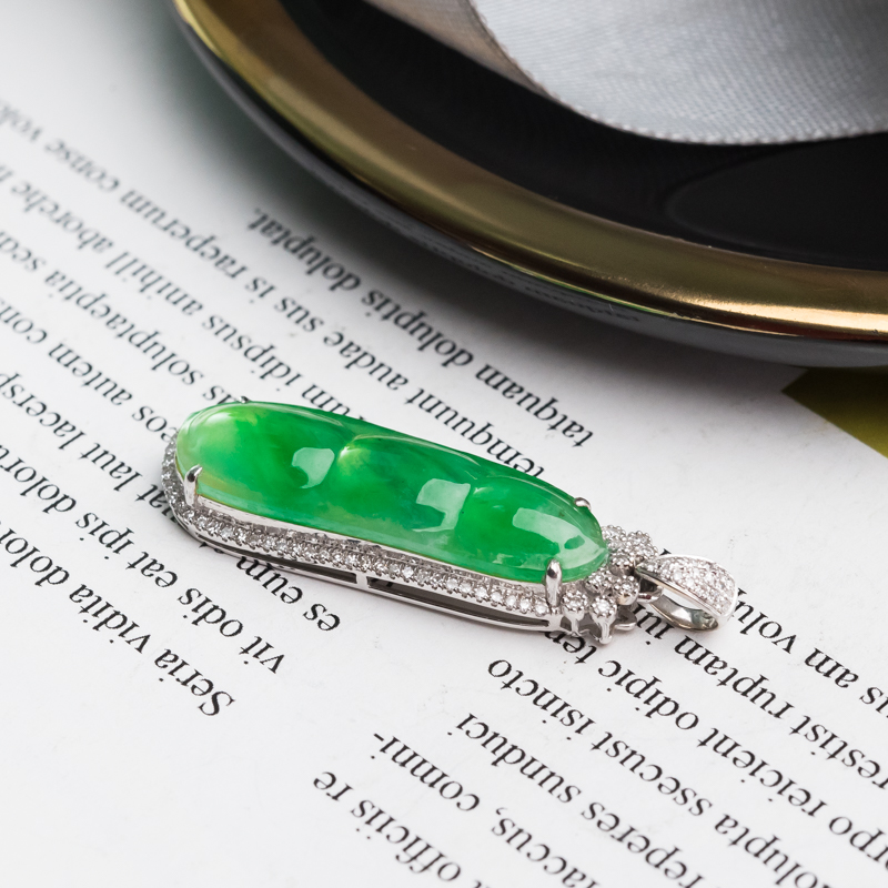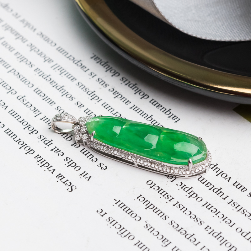 • [名  称] 18K糯冰种飘翠翡翠福豆吊坠