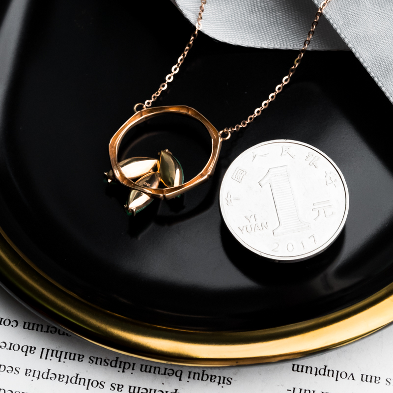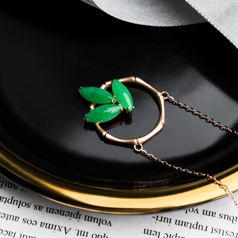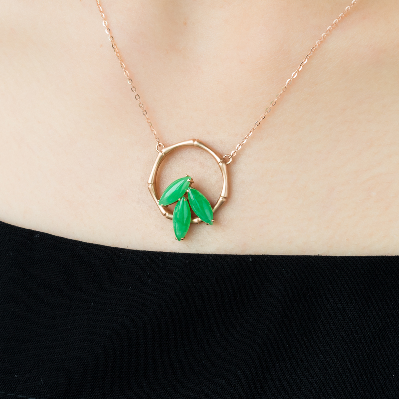 • 18K糯冰种翠绿翡翠项链