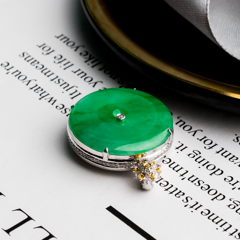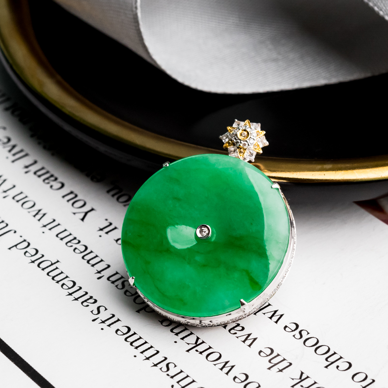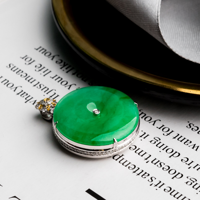 • [名  称] 18K糯冰种翠绿翡翠平安扣吊坠