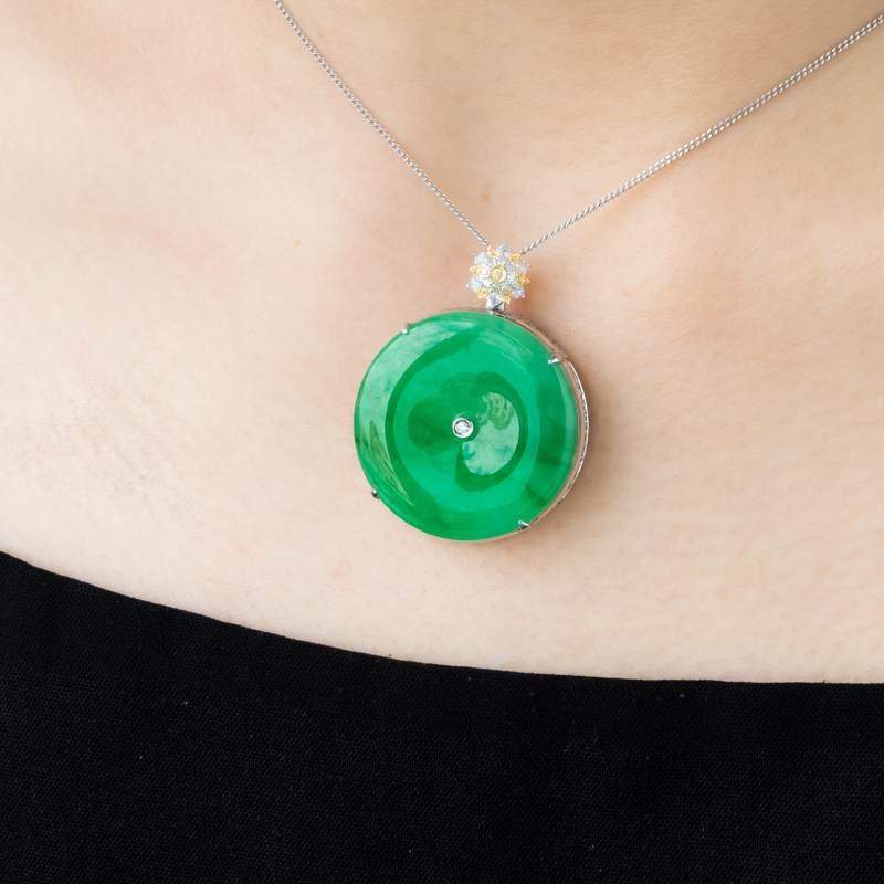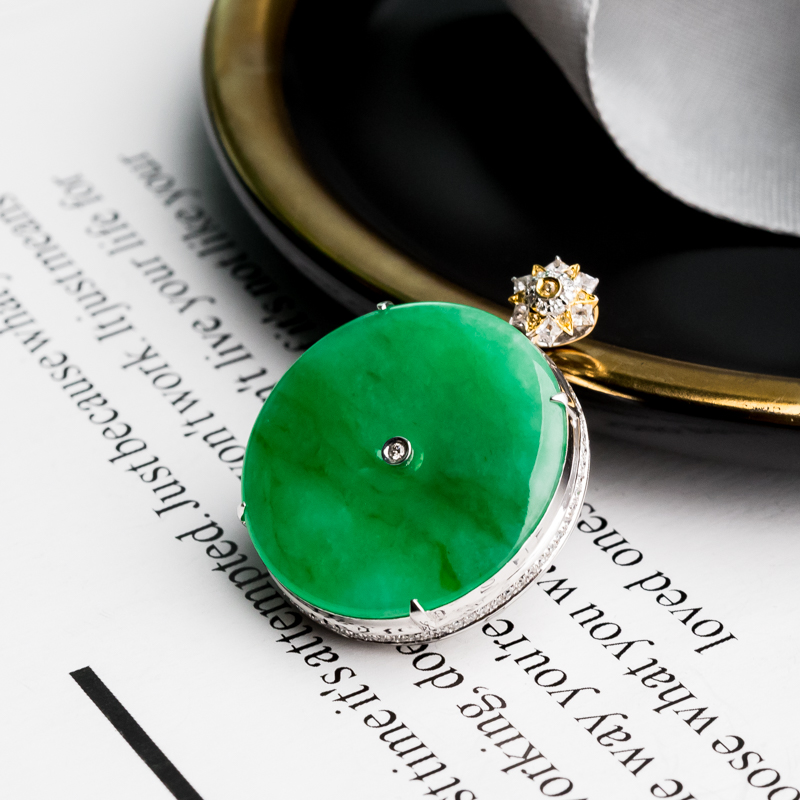 • 18K糯冰种翠绿翡翠平安扣吊坠