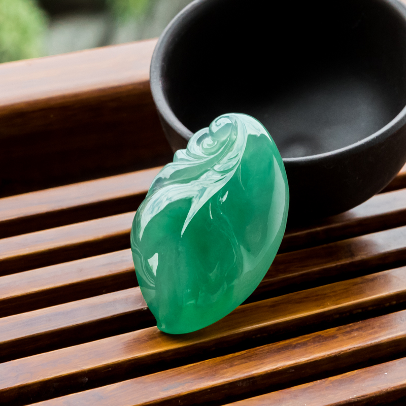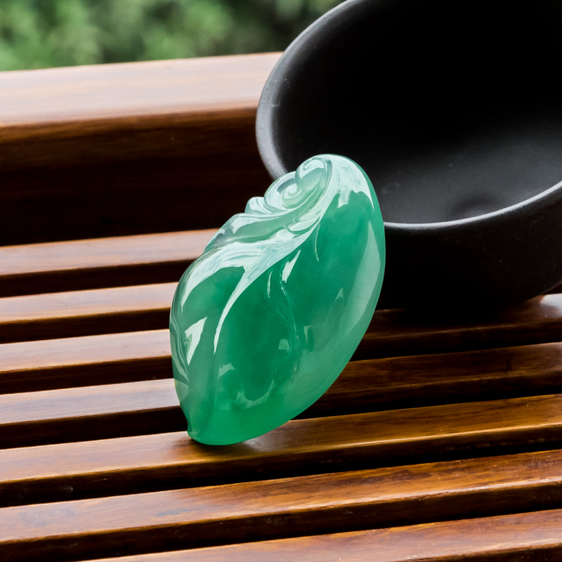 • [名  称] 糯冰种翠绿翡翠吊坠