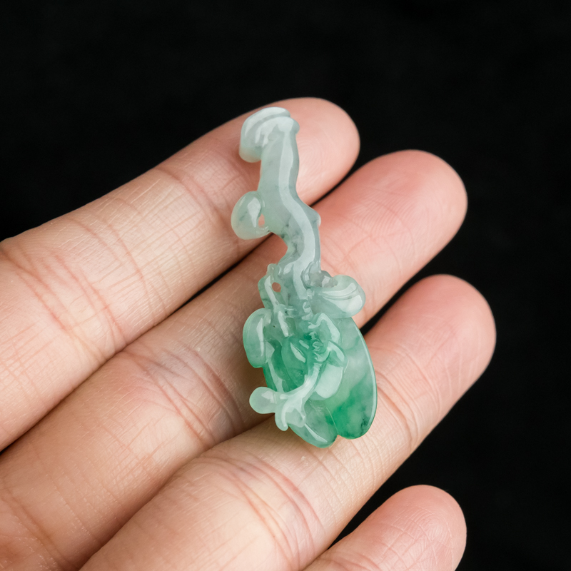 • 糯冰种飘翠翡翠一鸣惊人吊坠