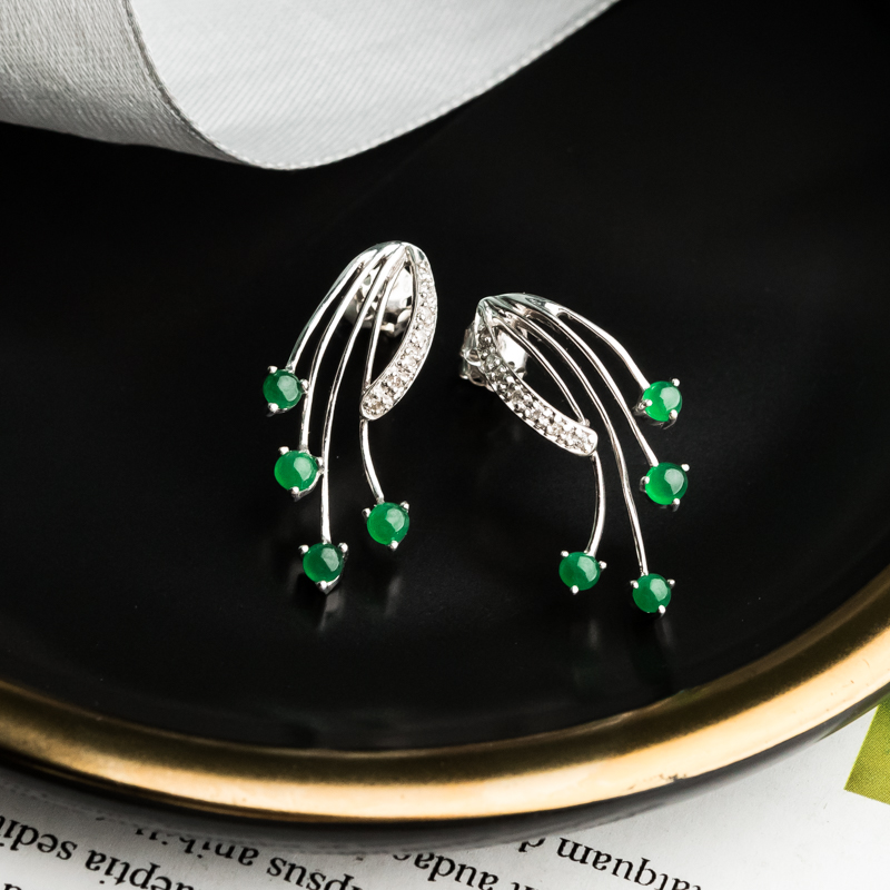 • [名  称] 18K糯冰种翠绿翡翠耳钉