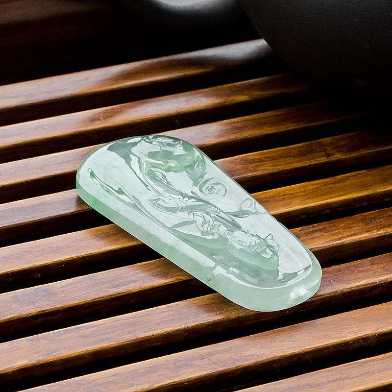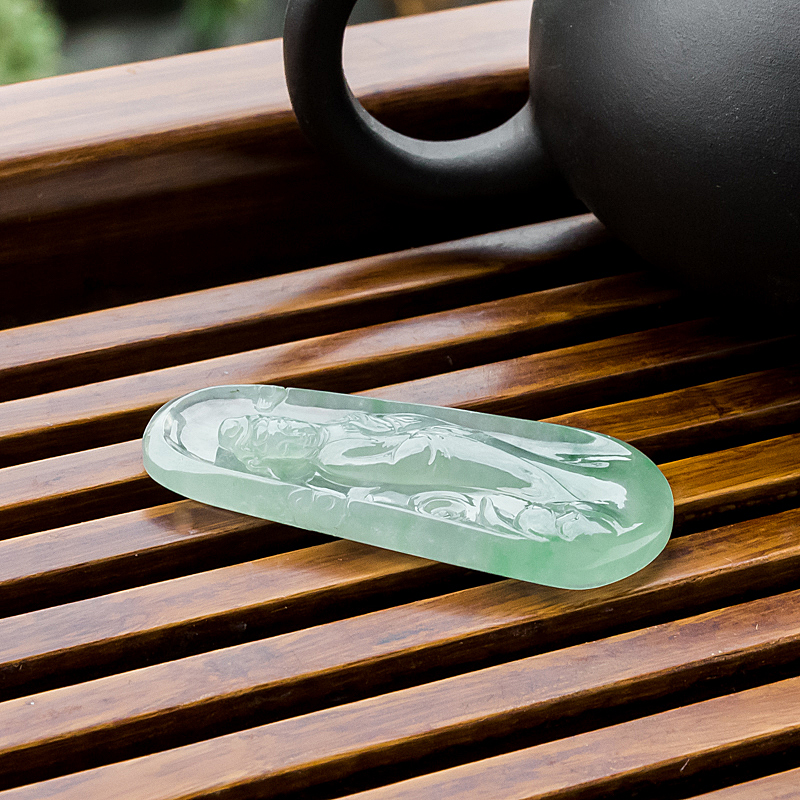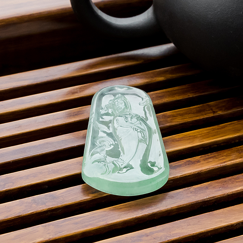 • 糯冰种浅绿翡翠观音吊坠