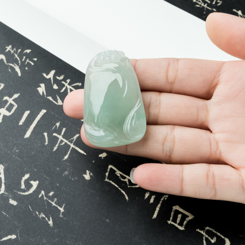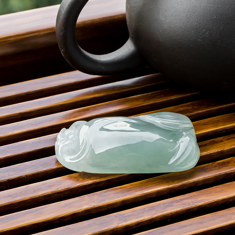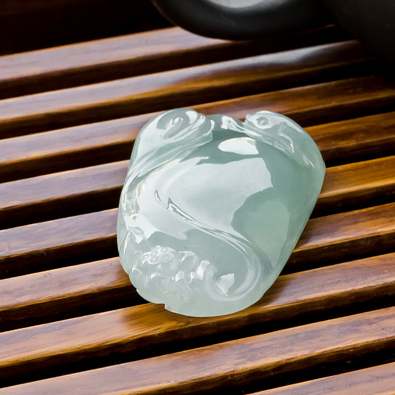 • 糯冰种浅绿翡翠连年有余吊坠