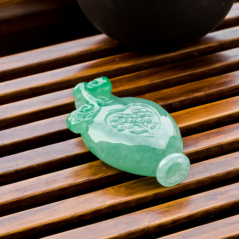 • [名  称] 糯冰种豆绿翡翠平平安安吊坠