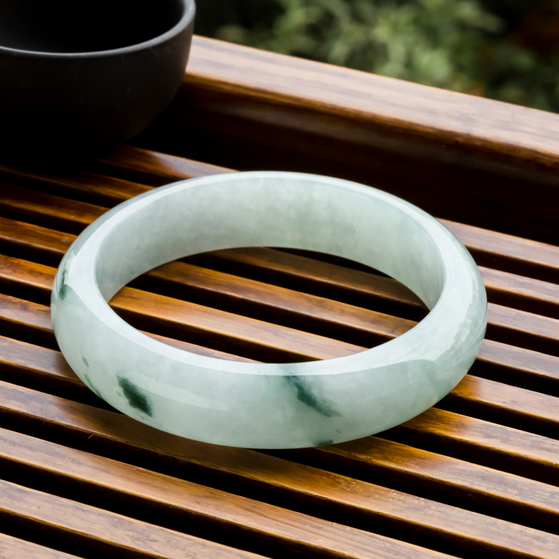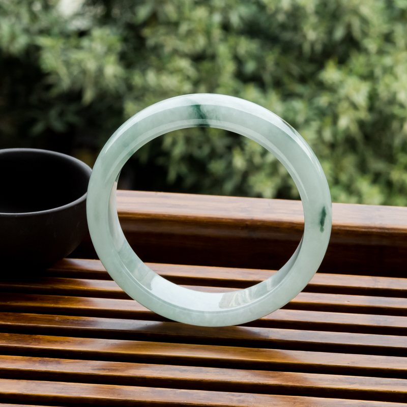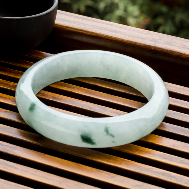 • [名  称] 57mm糯冰种飘花翡翠平安镯