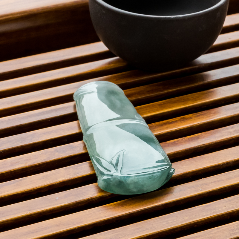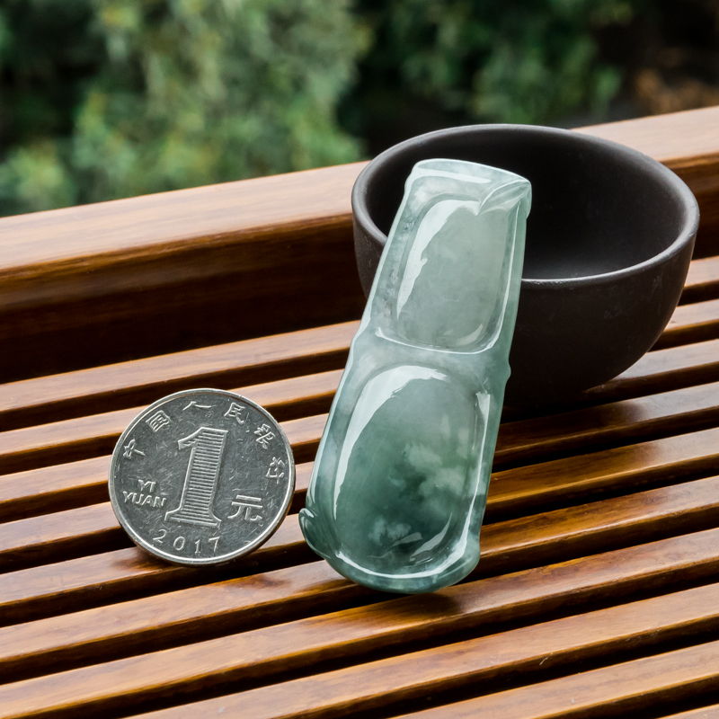 • [名  称] 糯冰种灰绿翡翠节节高升吊坠