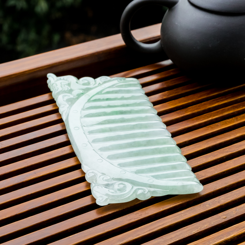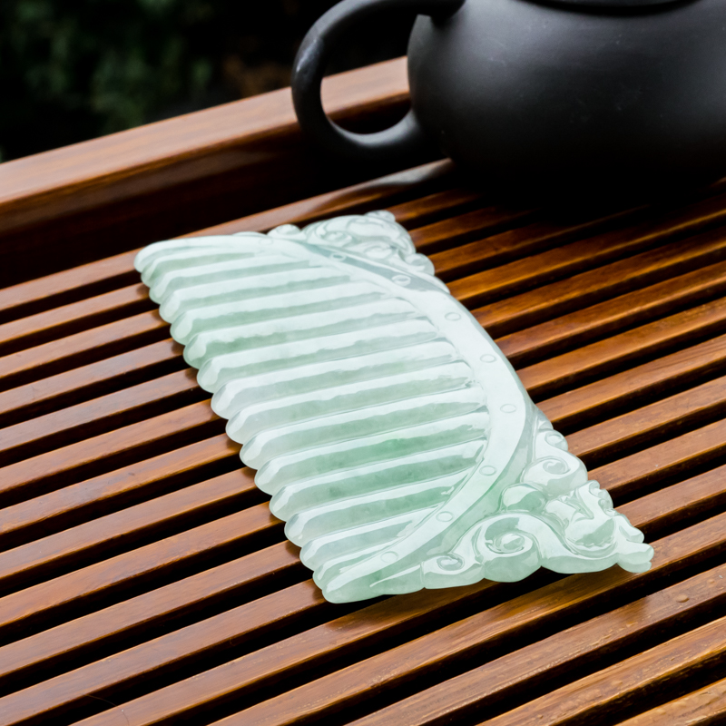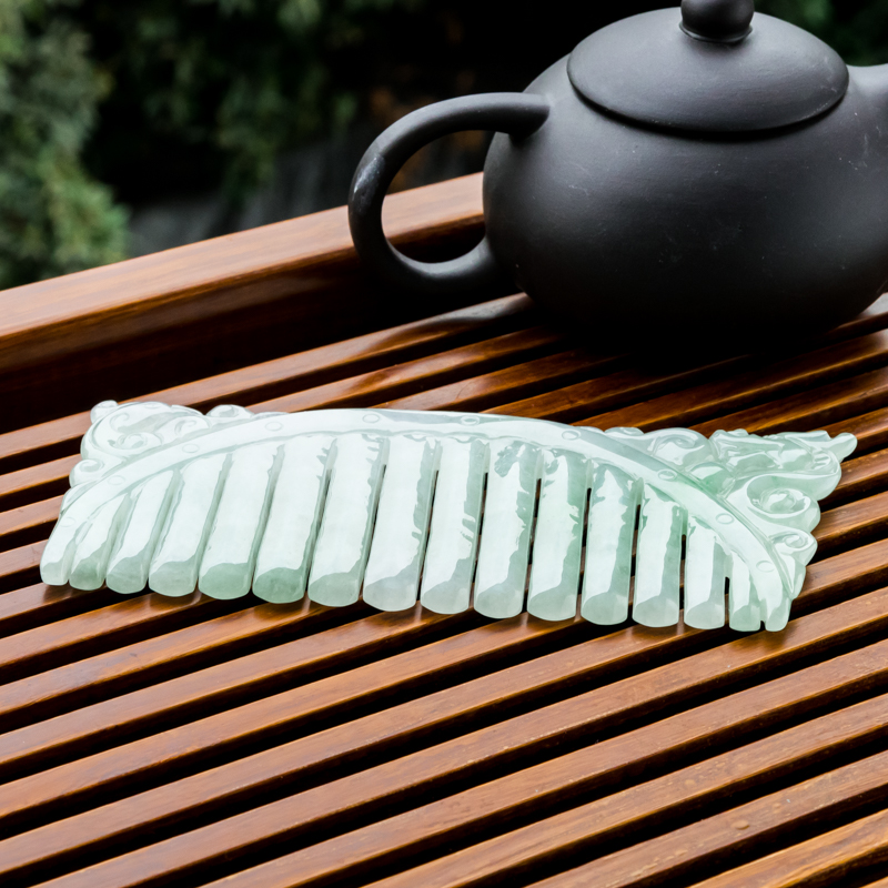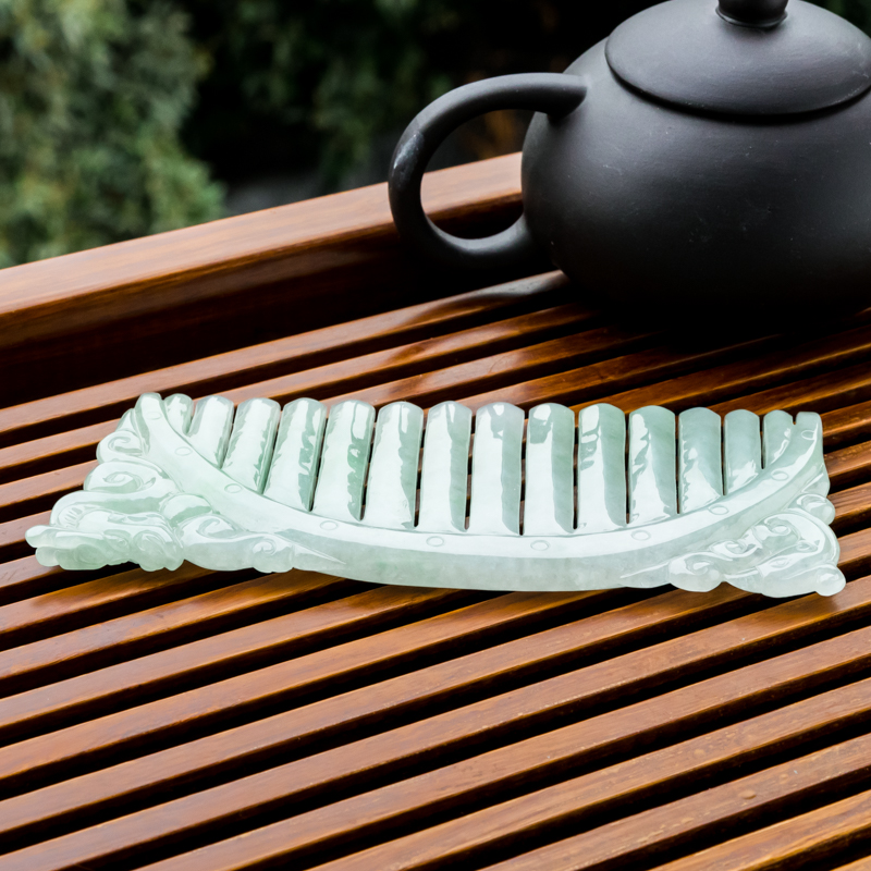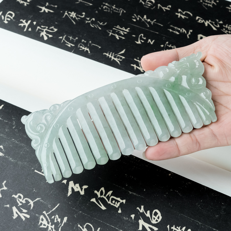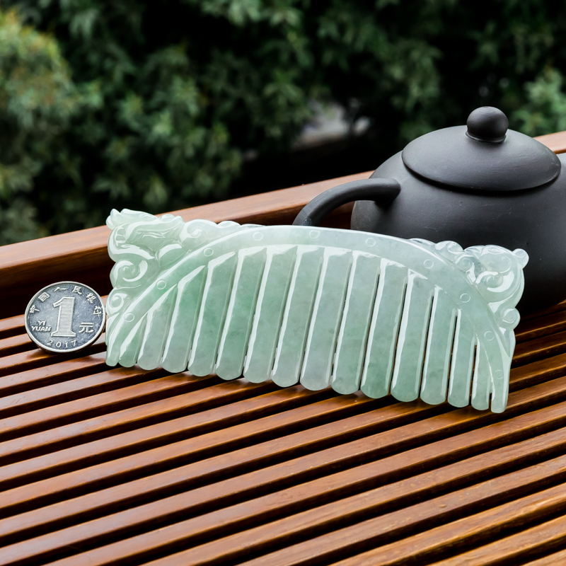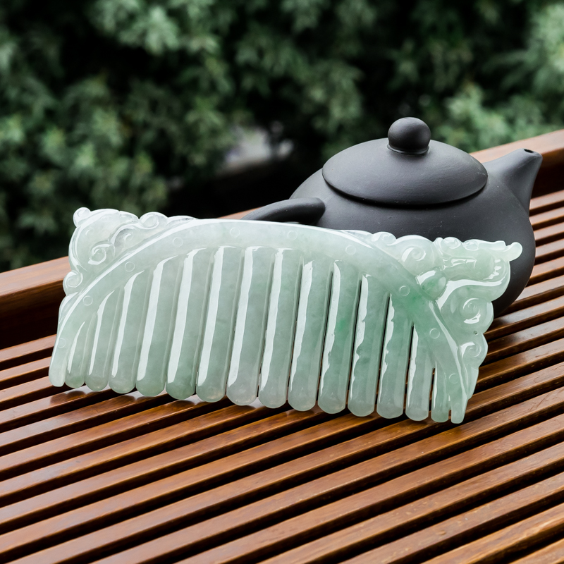 • 糯冰种浅绿翡翠龙凤呈祥梳子