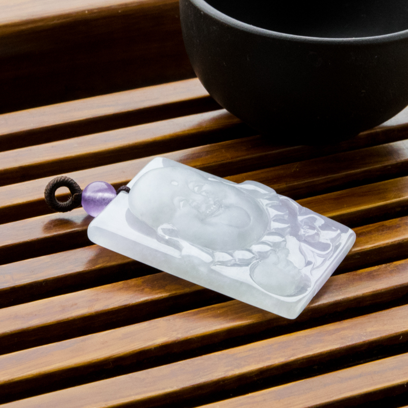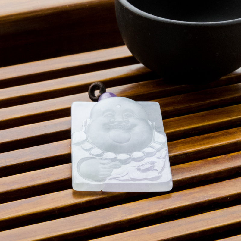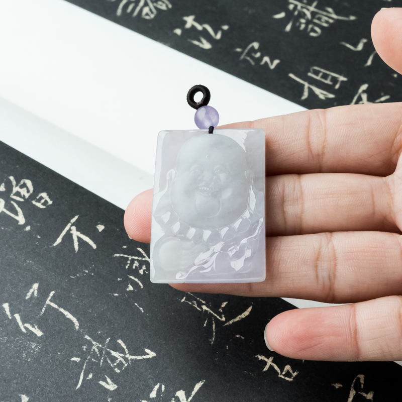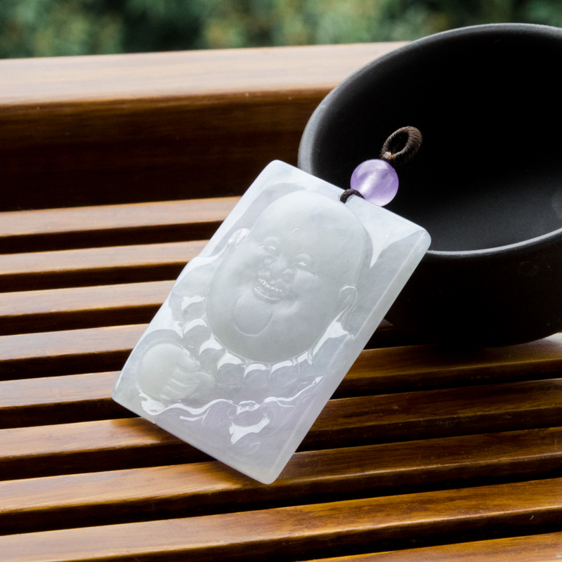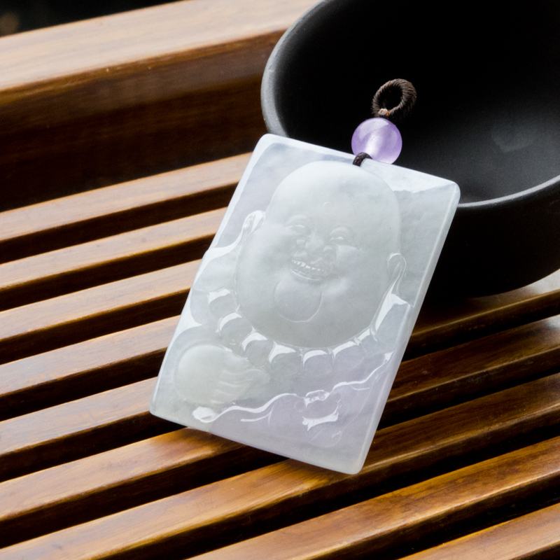 • 糯冰种浅紫翡翠弥勒佛吊坠