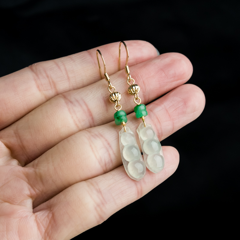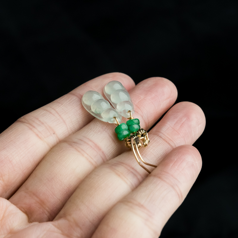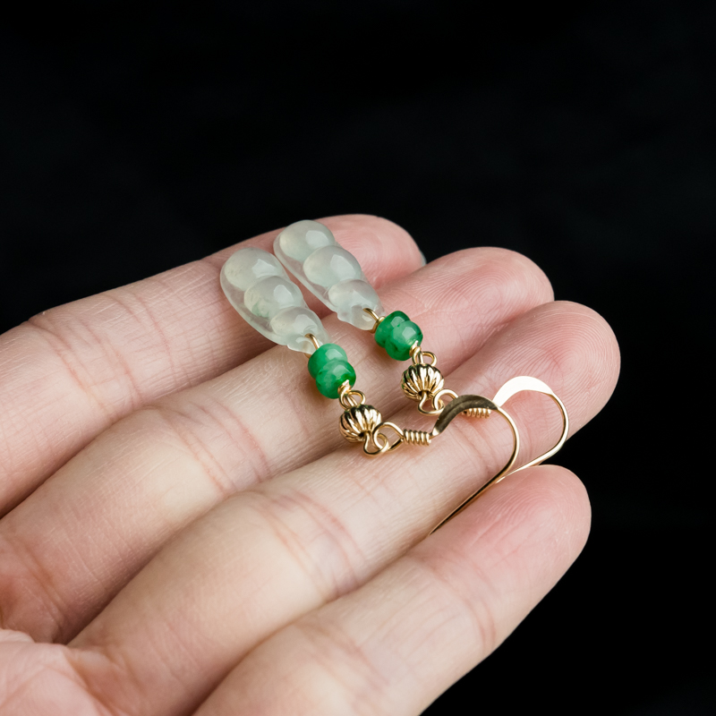 • [名  称] 14K糯冰种翡翠福豆耳坠