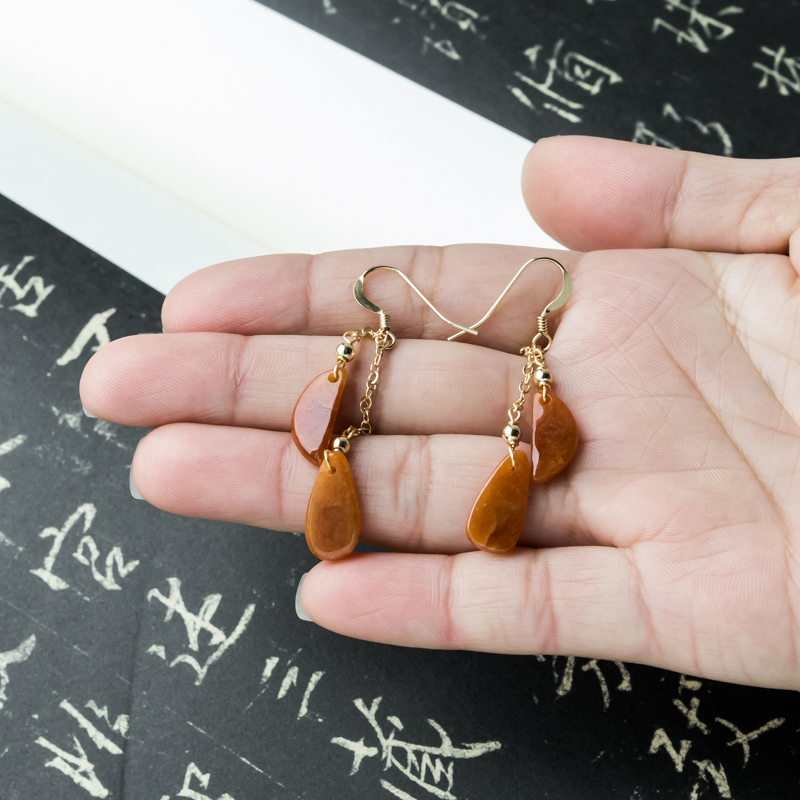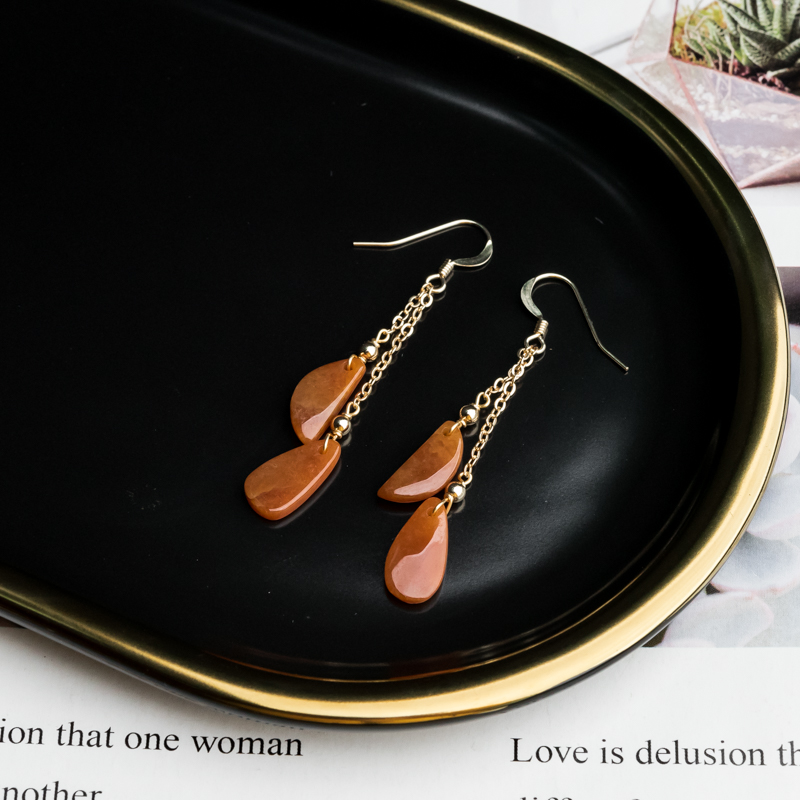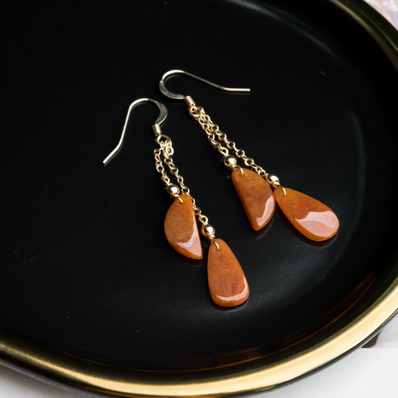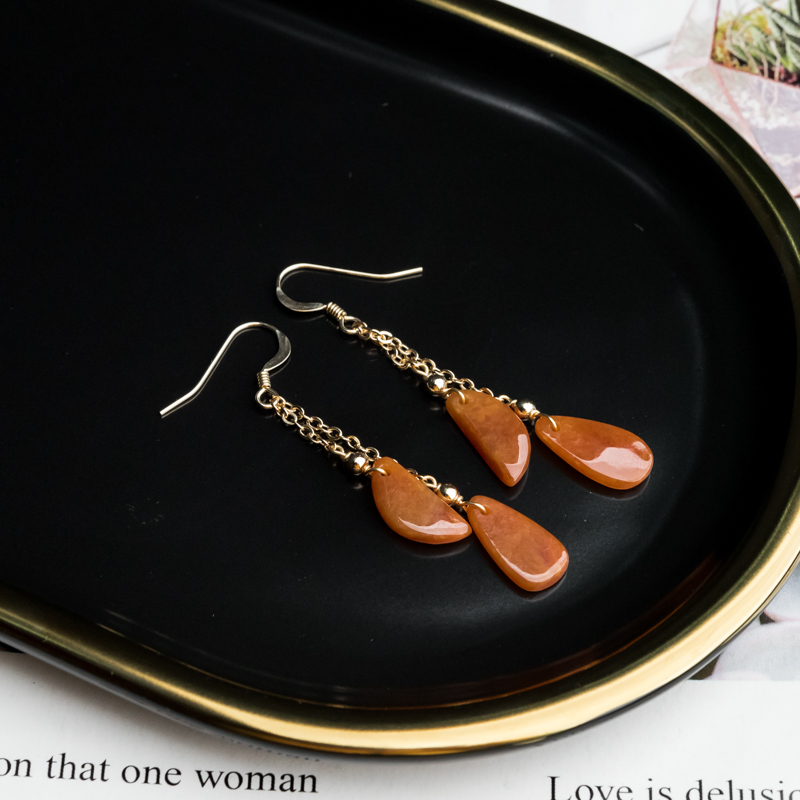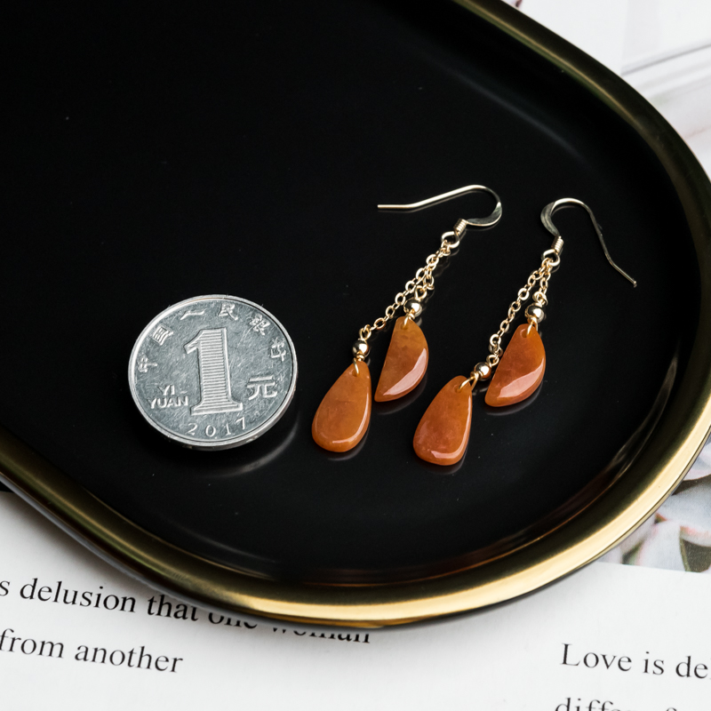 • 14K糯冰种红翡翡翠耳坠