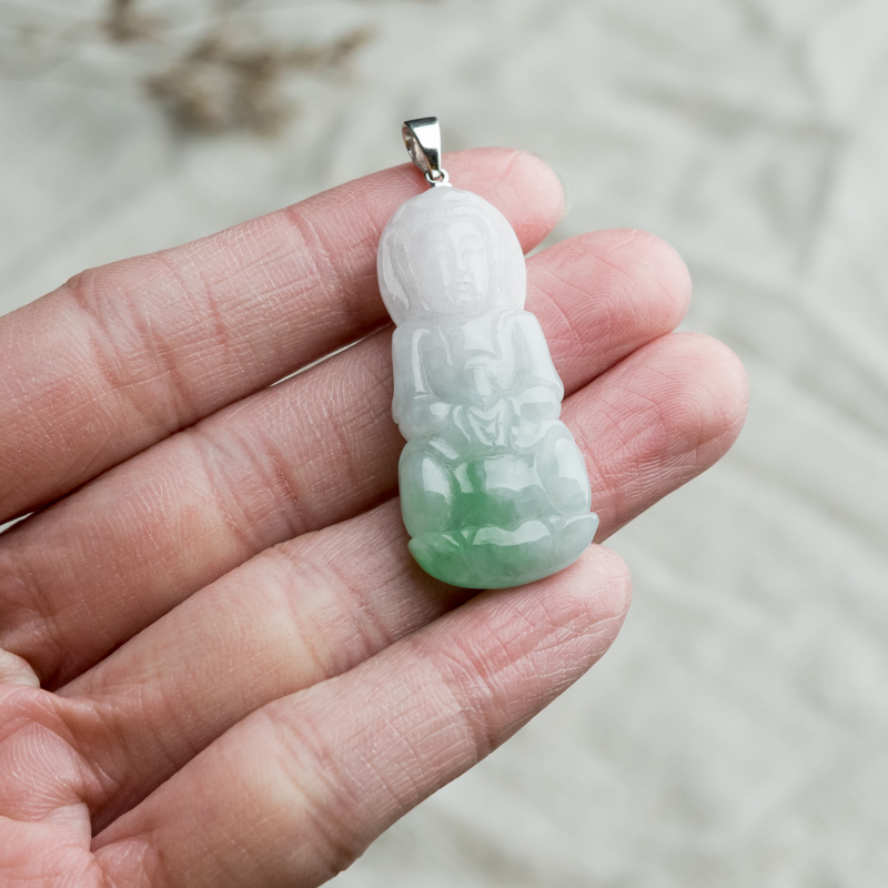 • [名  称] 18K糯冰种飘翠翡翠观音吊坠