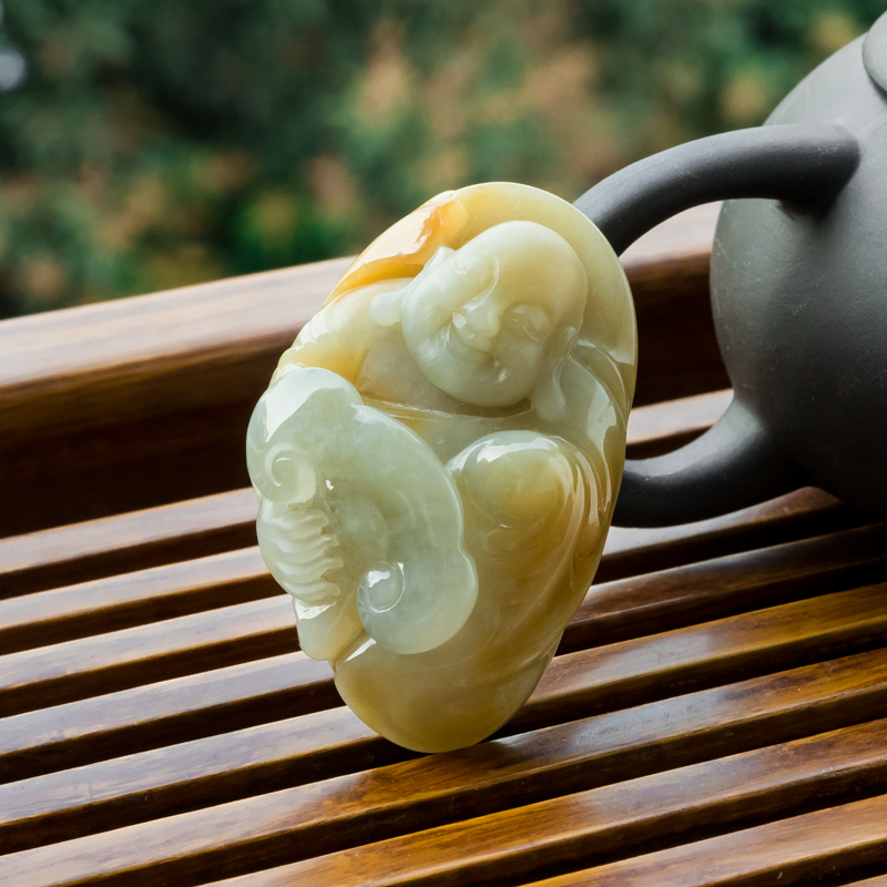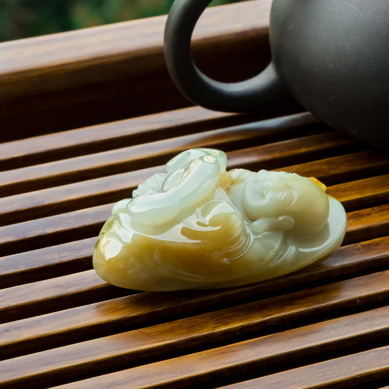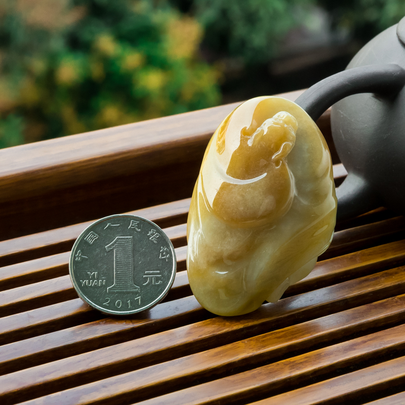 • 糯冰种黄翡翡翠弥勒佛吊坠