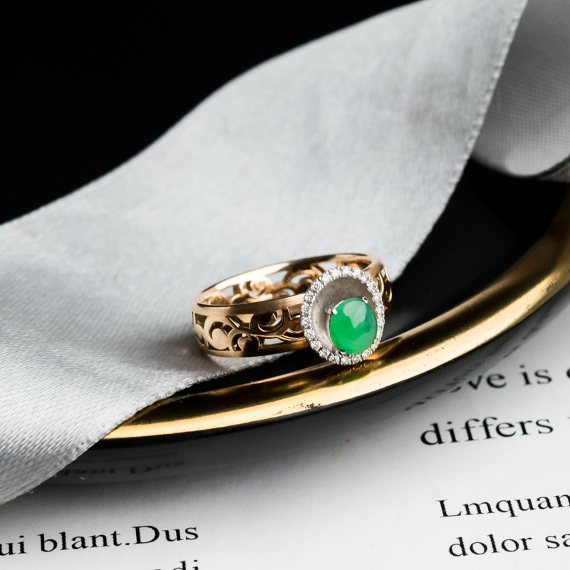 • [名  称] 18K糯冰种浅绿翡翠戒指