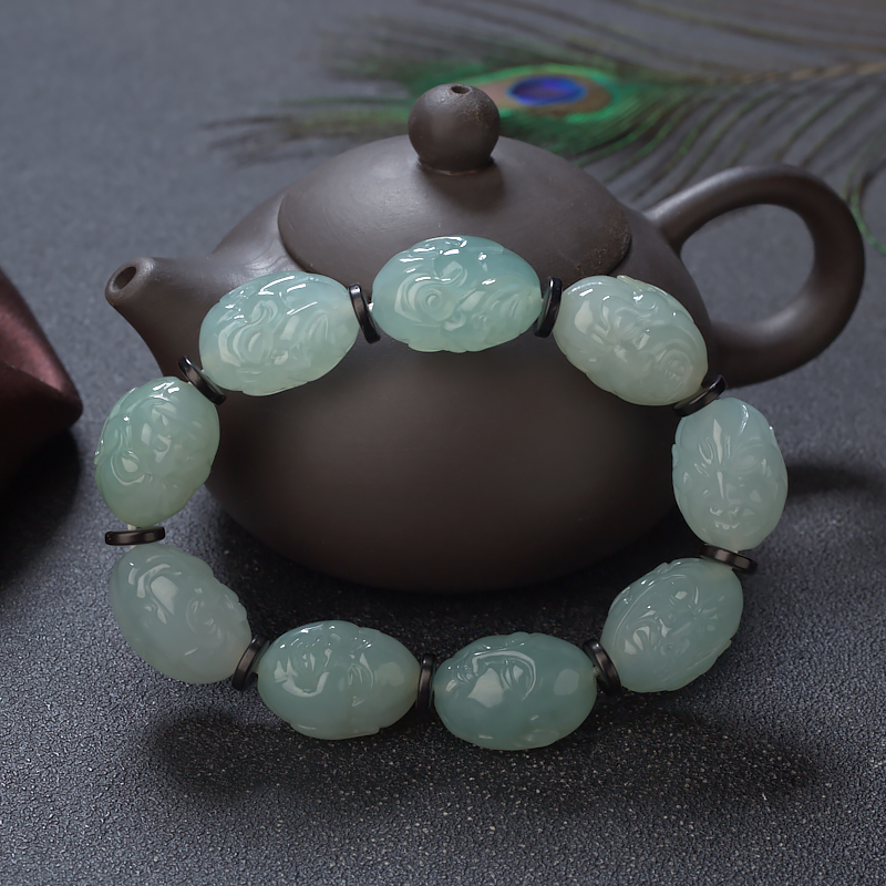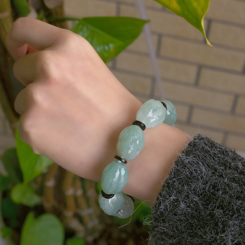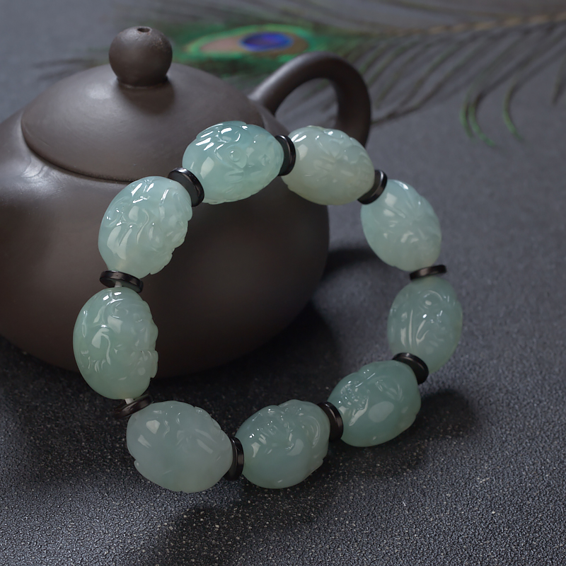 • [名  称] 糯冰种浅绿翡翠罗汉头单圈手串
