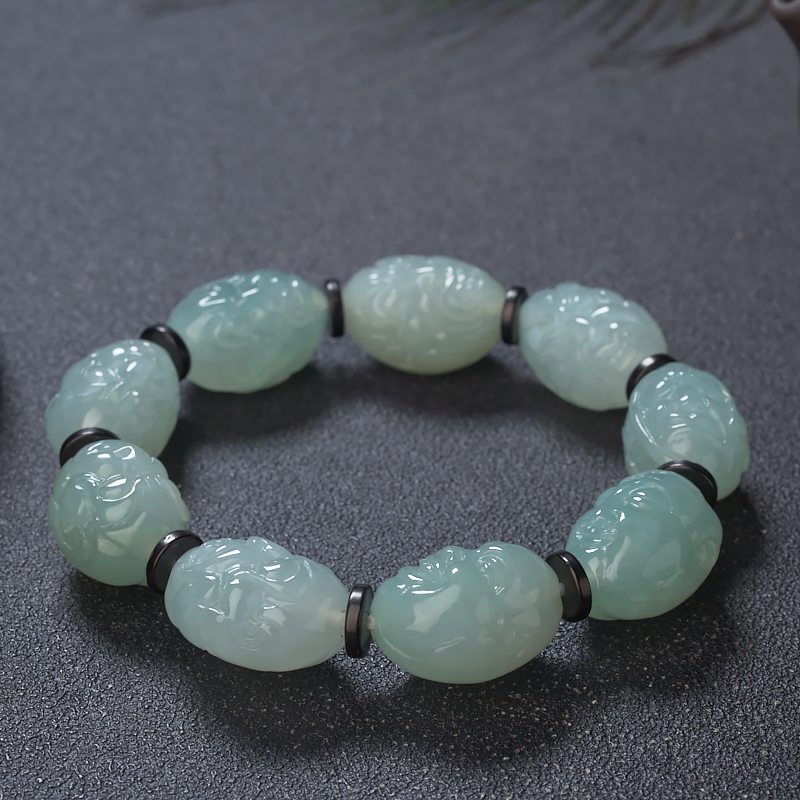 • 糯冰种浅绿翡翠罗汉头单圈手串