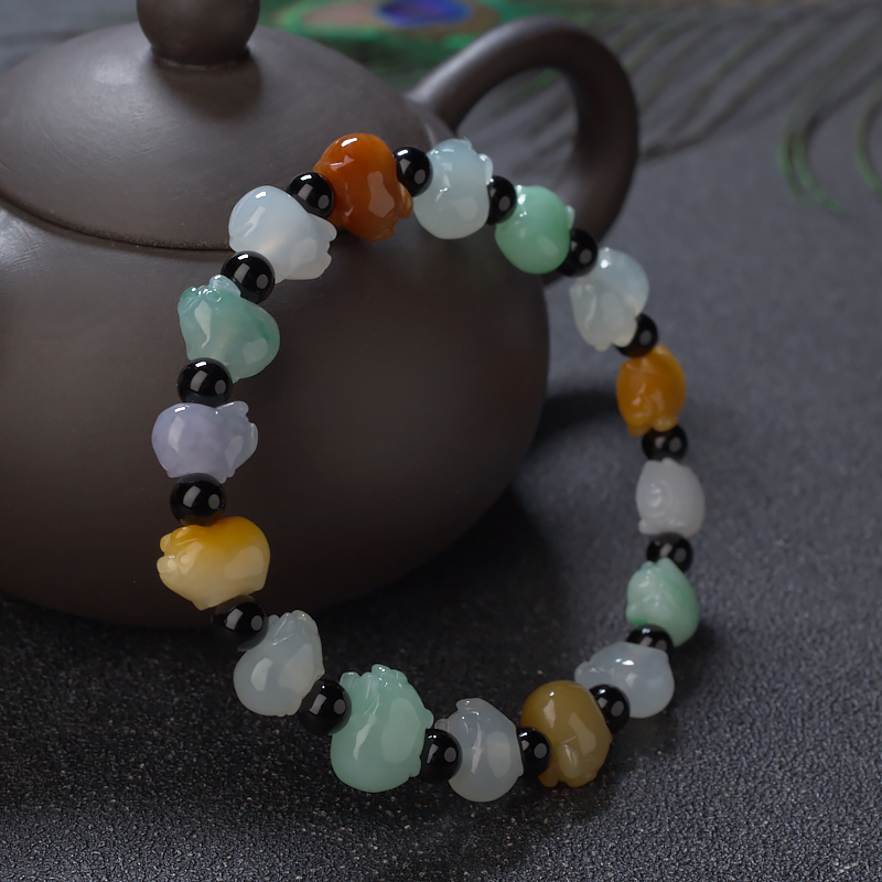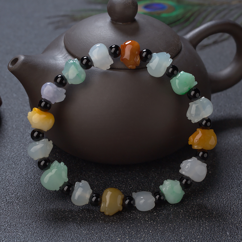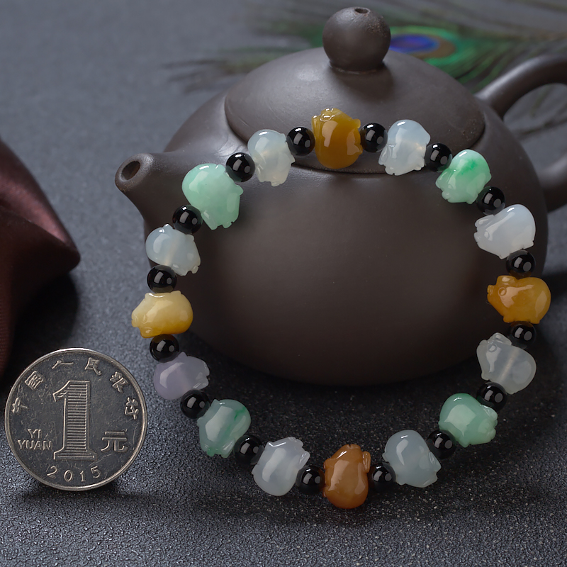 • [名  称] 糯冰种翡翠小猪单圈手串