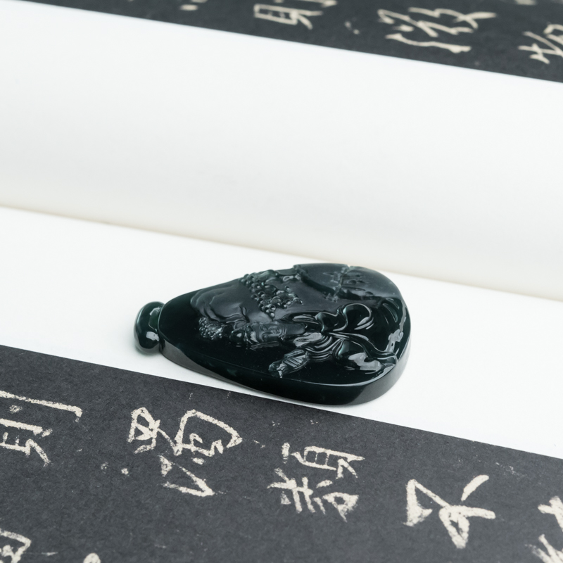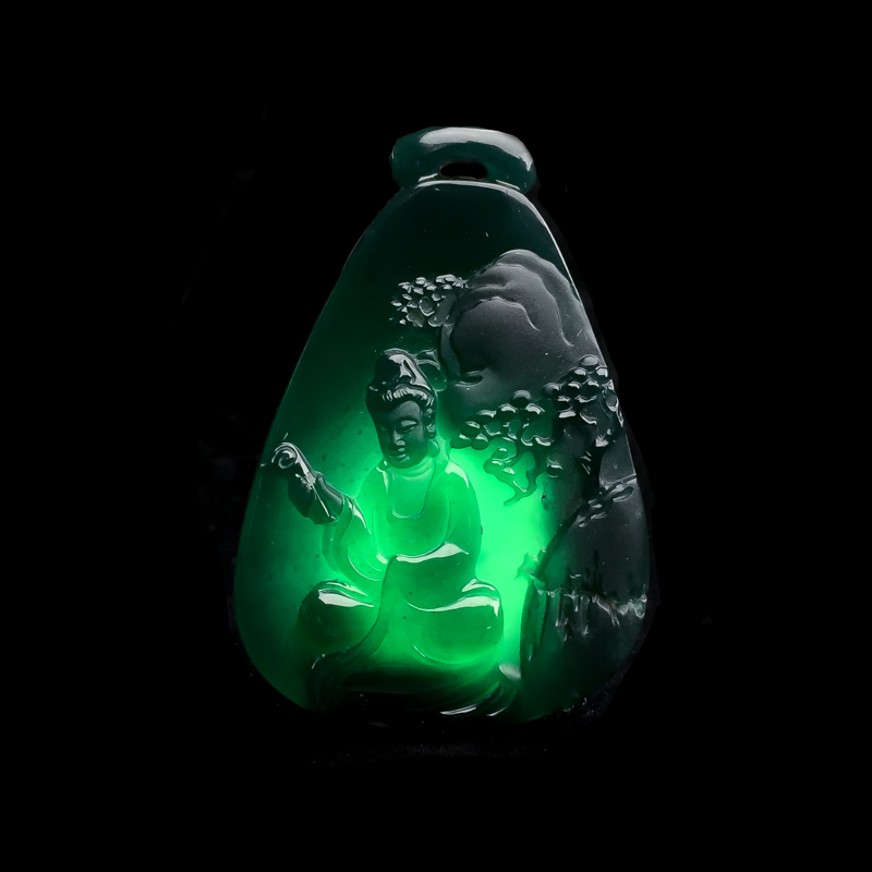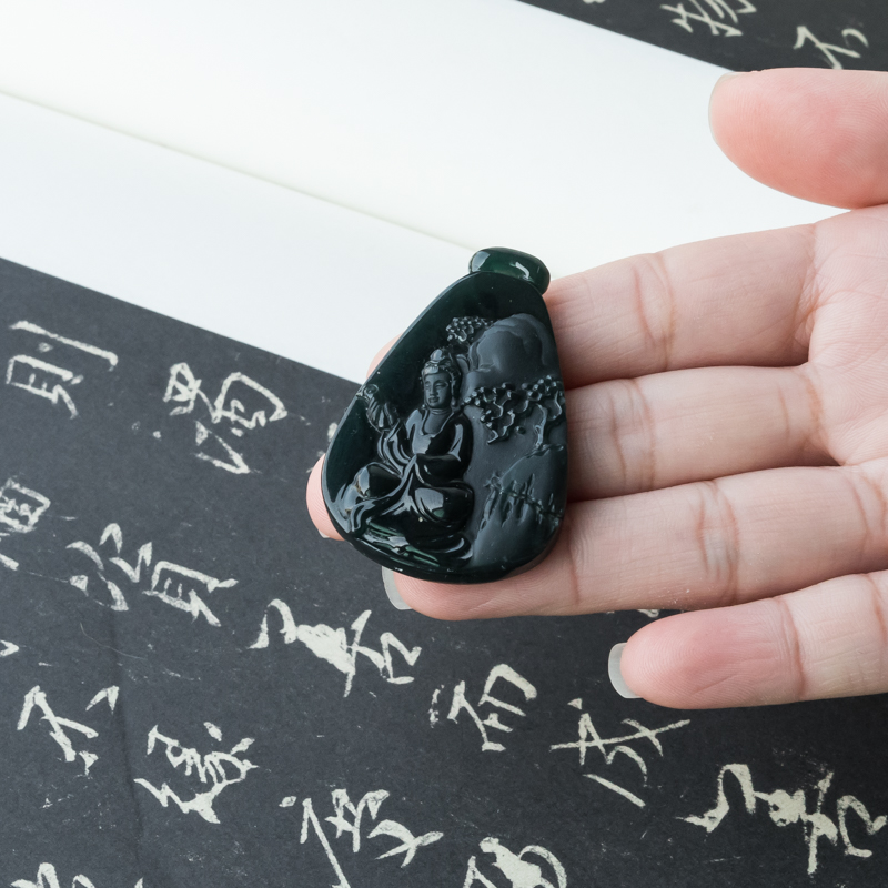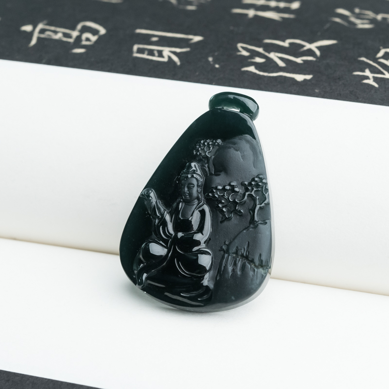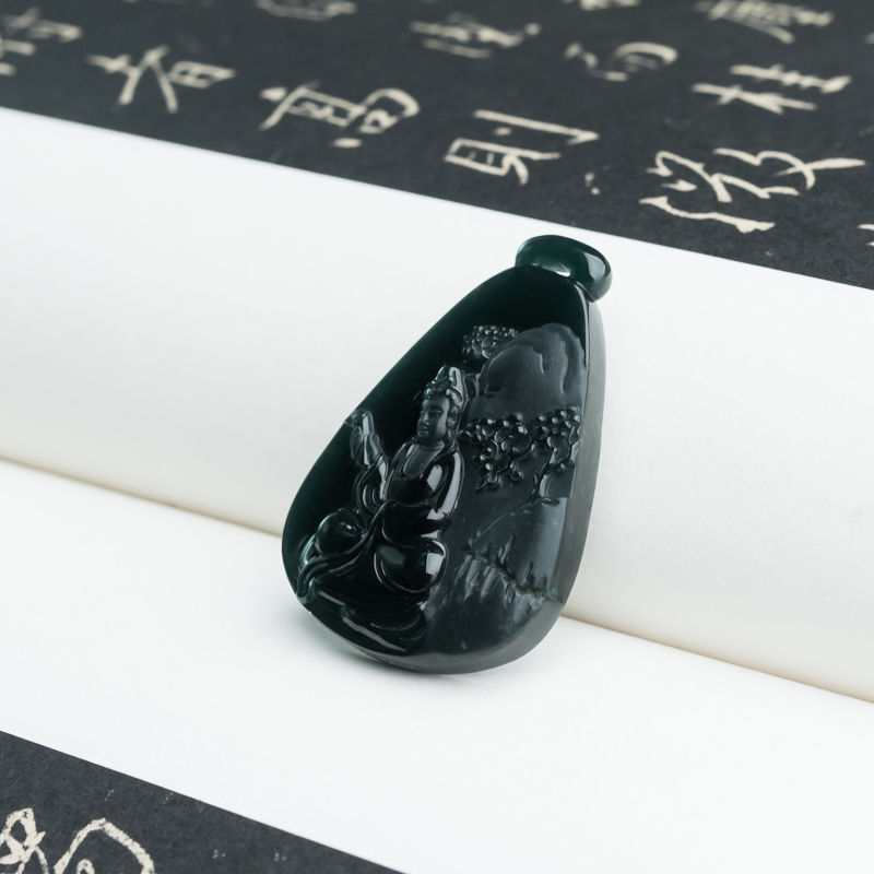 • 糯冰种墨翠观音吊坠