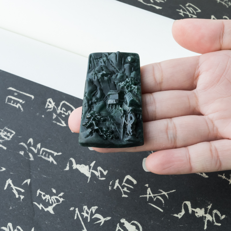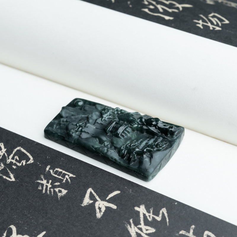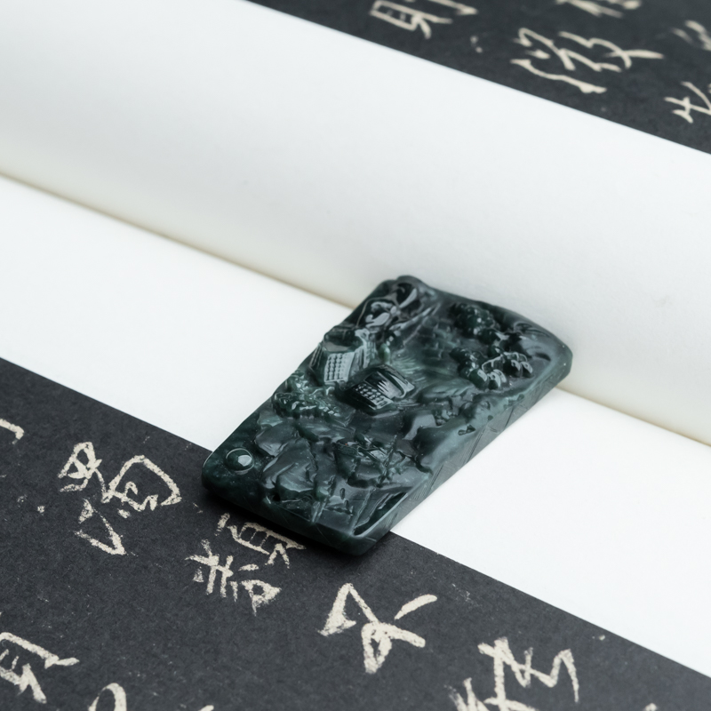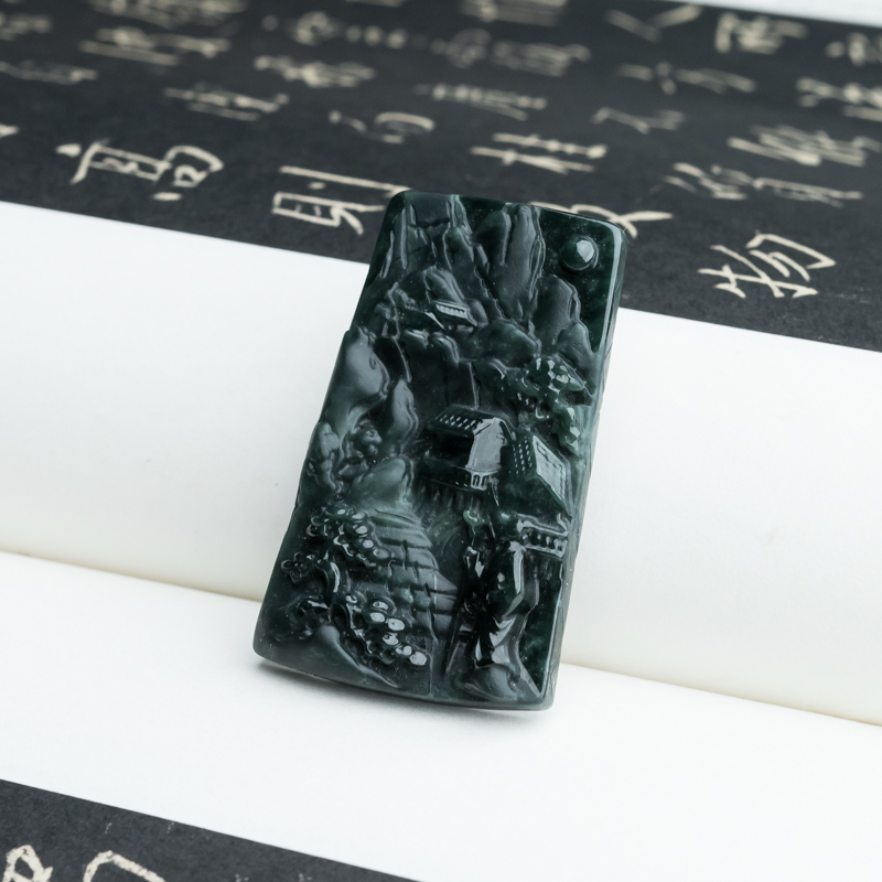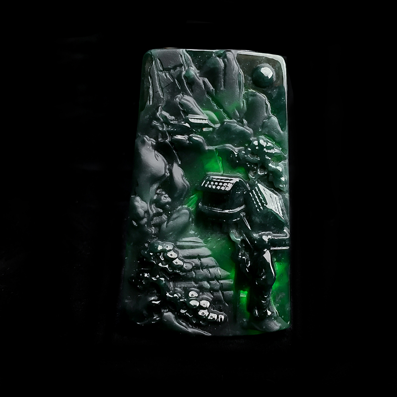 • 糯冰种墨翠登高望远吊坠