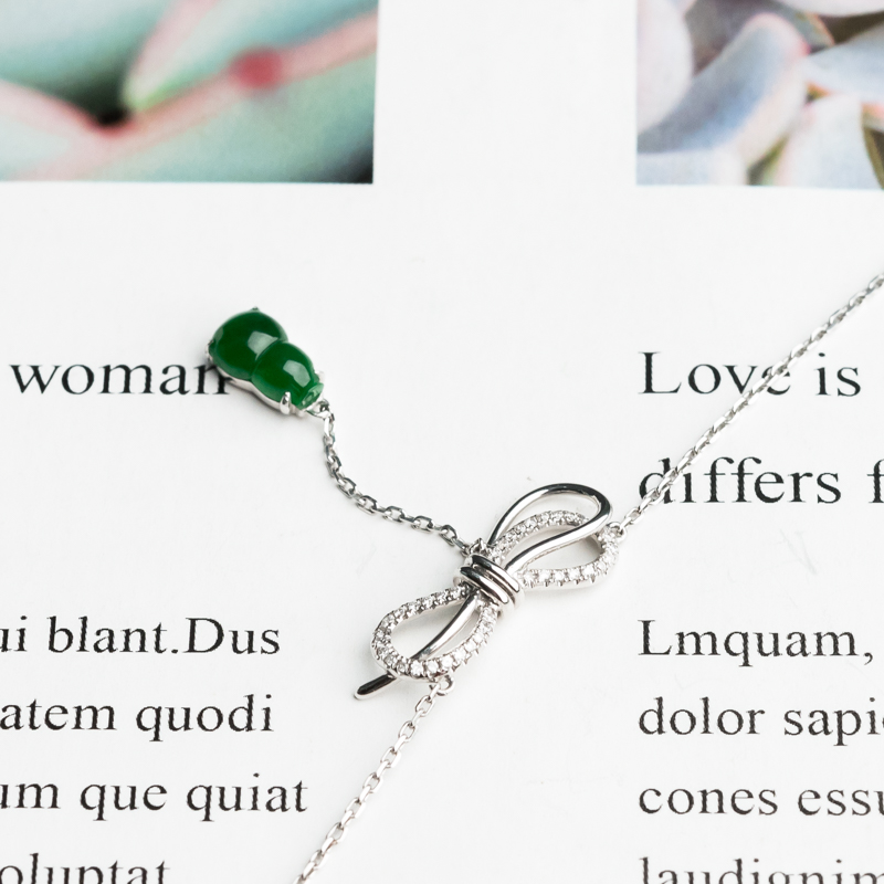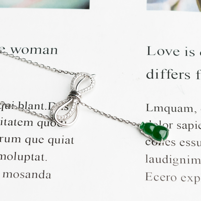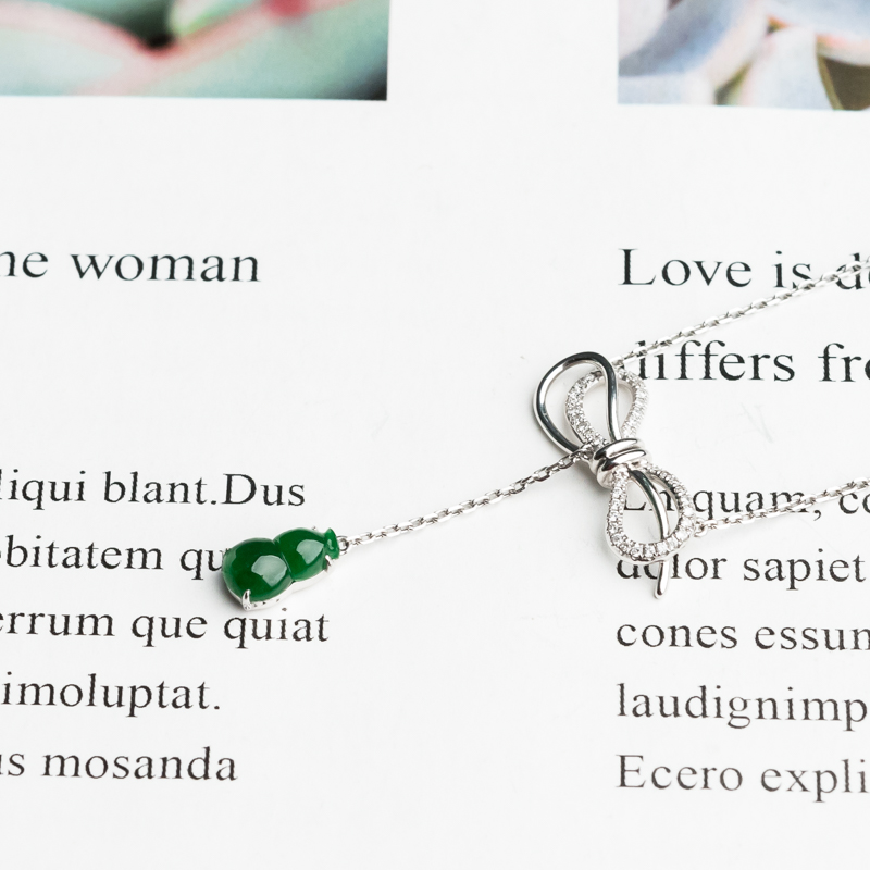 • [名  称] 18K糯冰种阳绿翡翠福禄项链