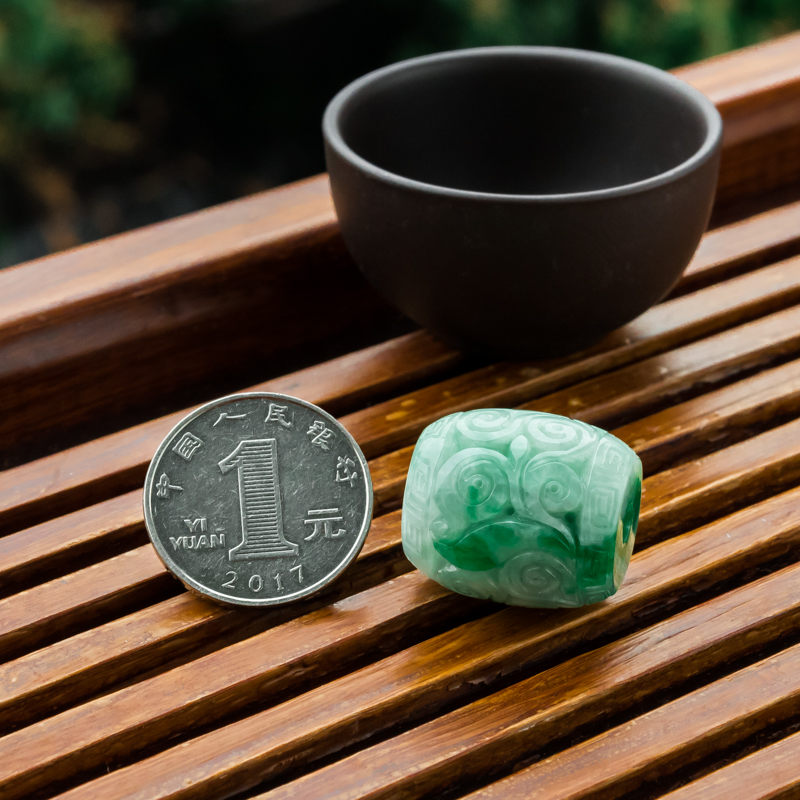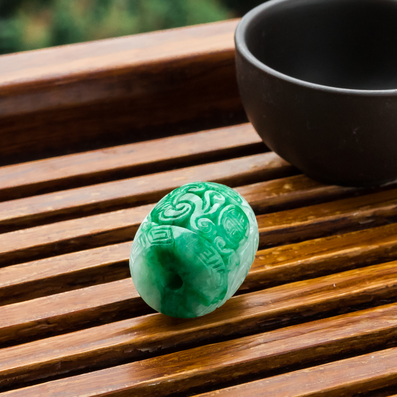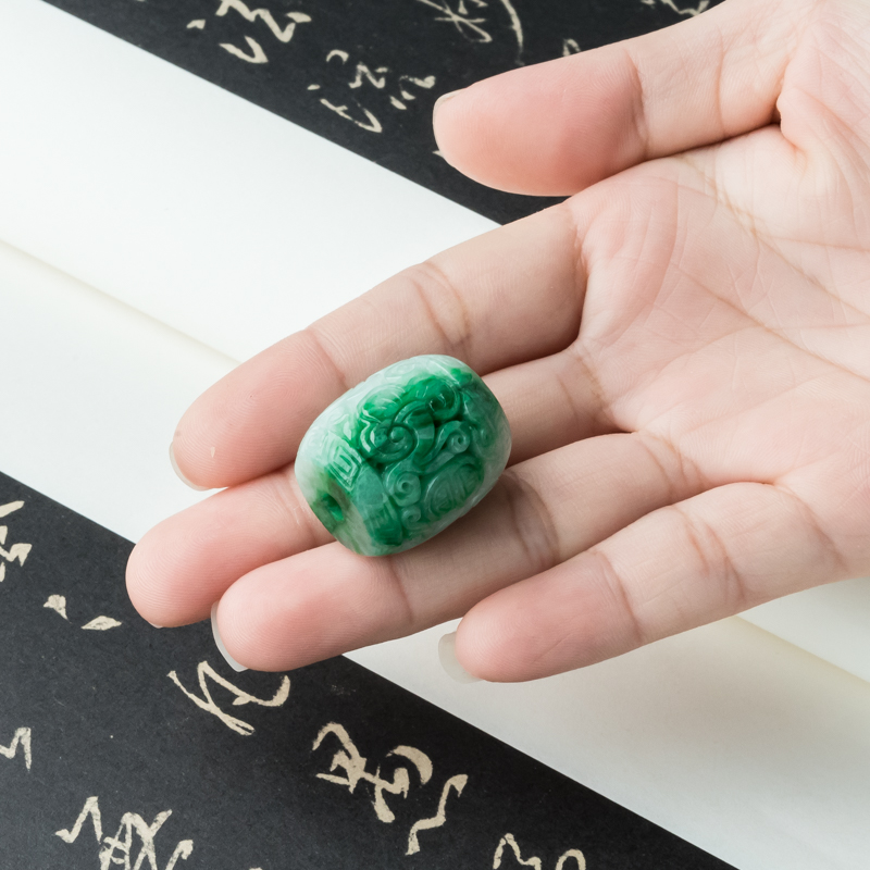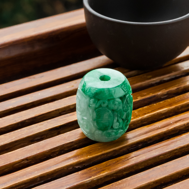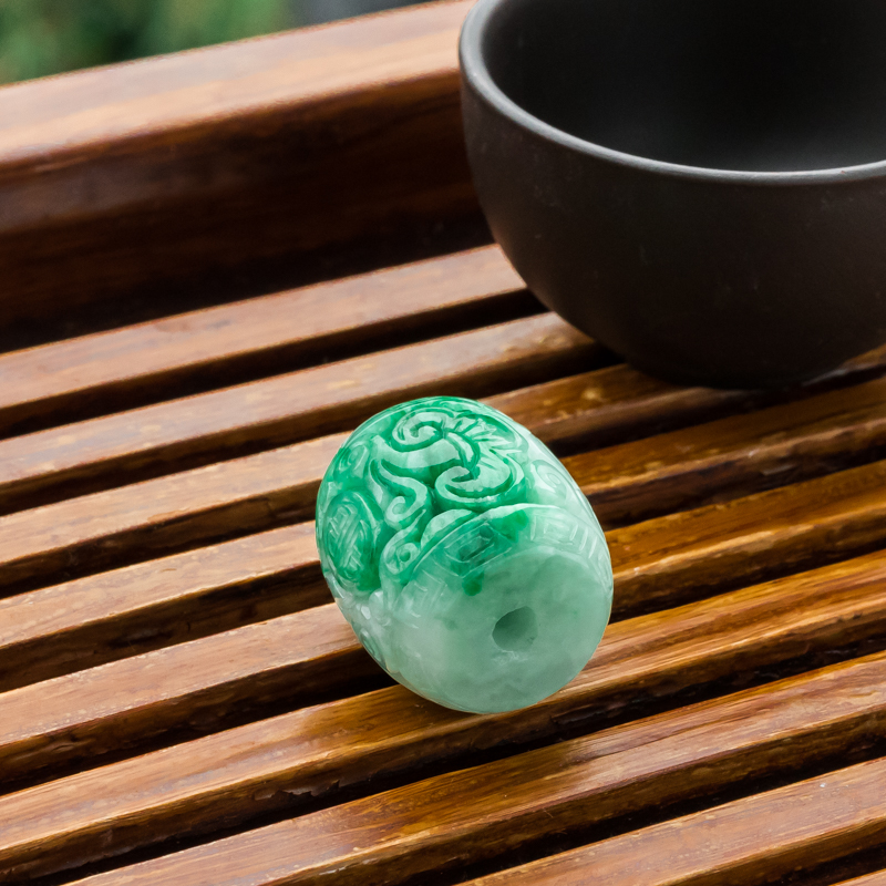 • 糯冰种飘翠翡翠仿古桶珠吊坠