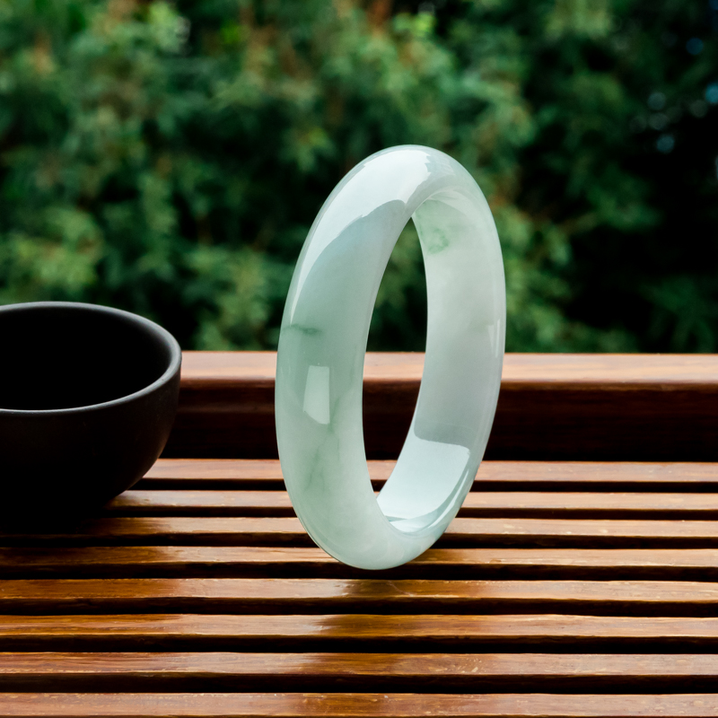• [名  称] 58.5mm糯冰种浅绿翡翠平安镯