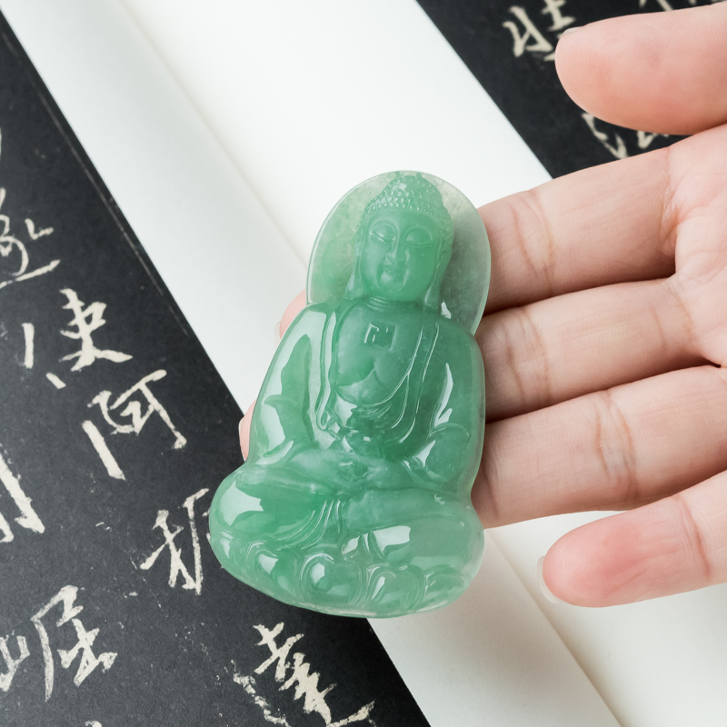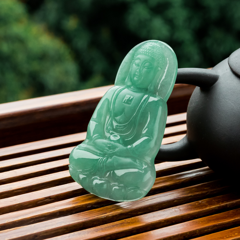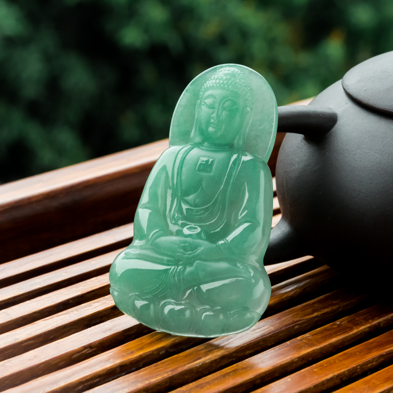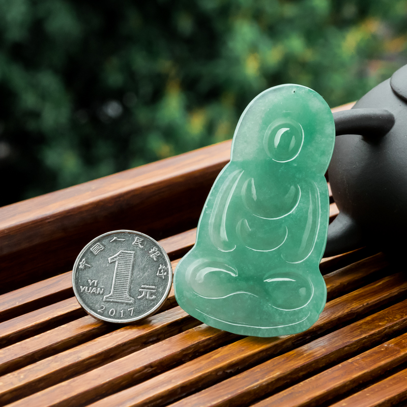 • [名  称] 糯冰种豆绿翡翠大日如来吊坠