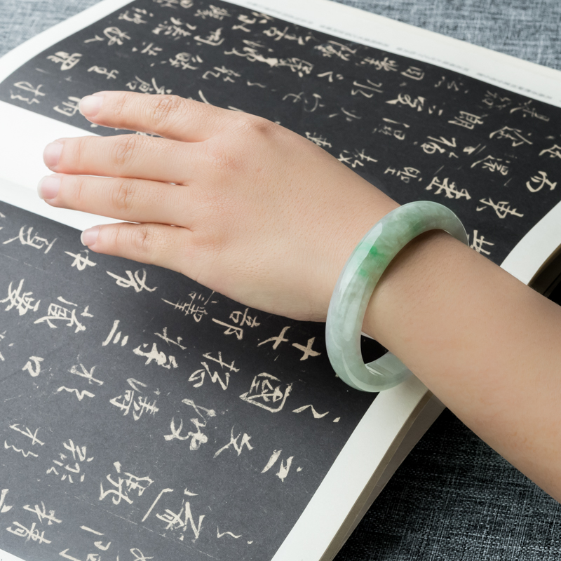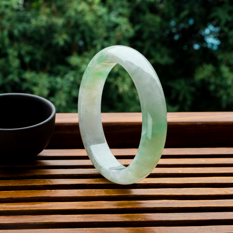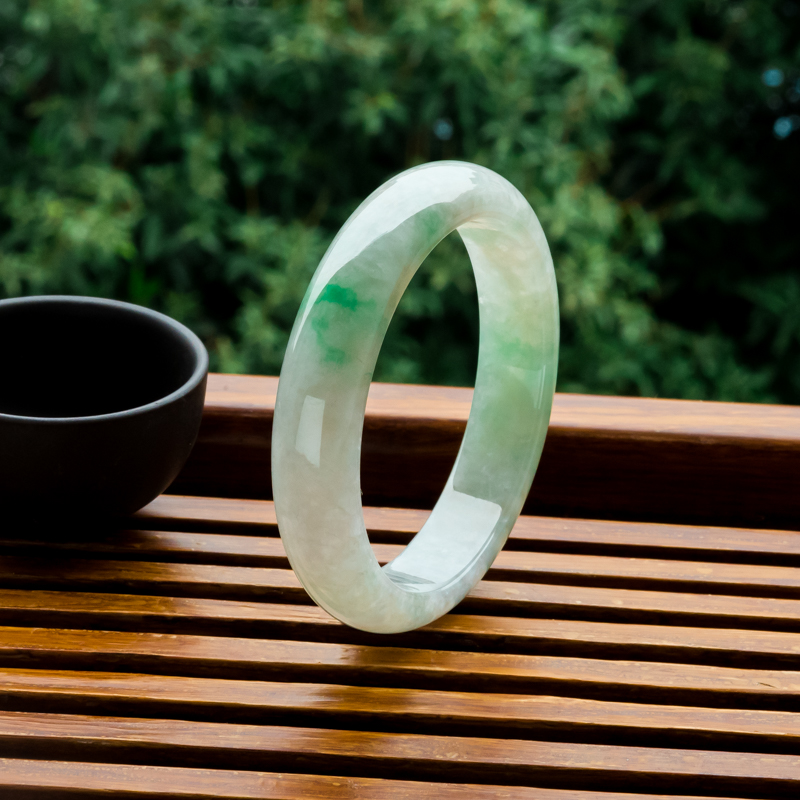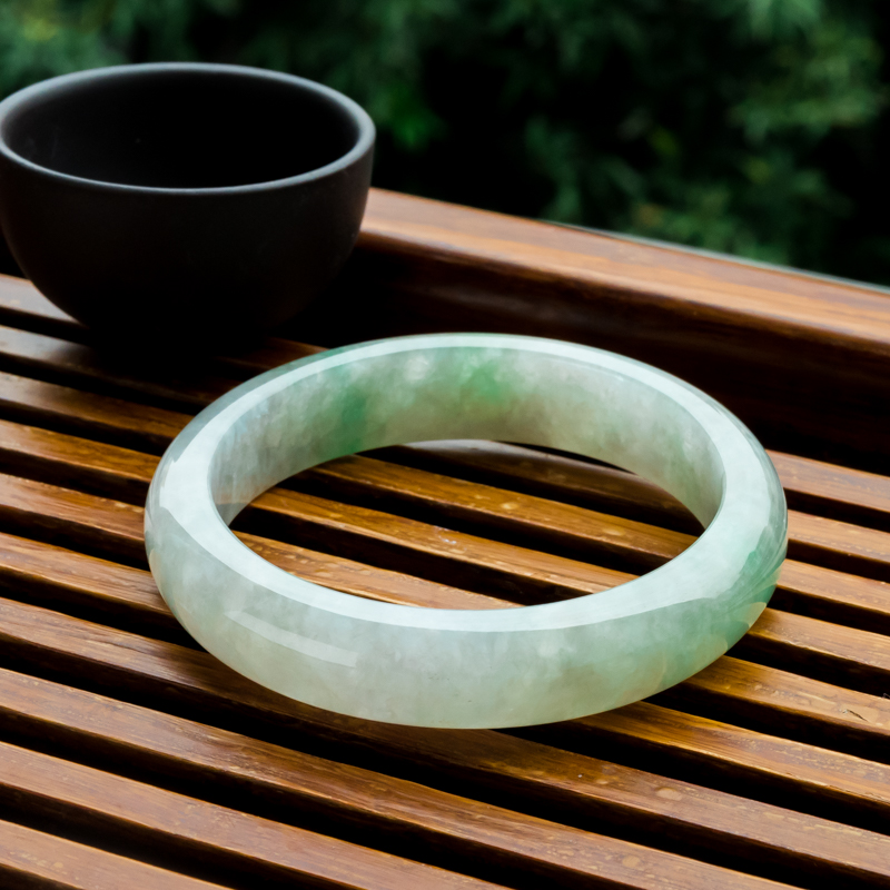 • [名  称] 57.5mm糯冰种飘翠翡翠平安镯