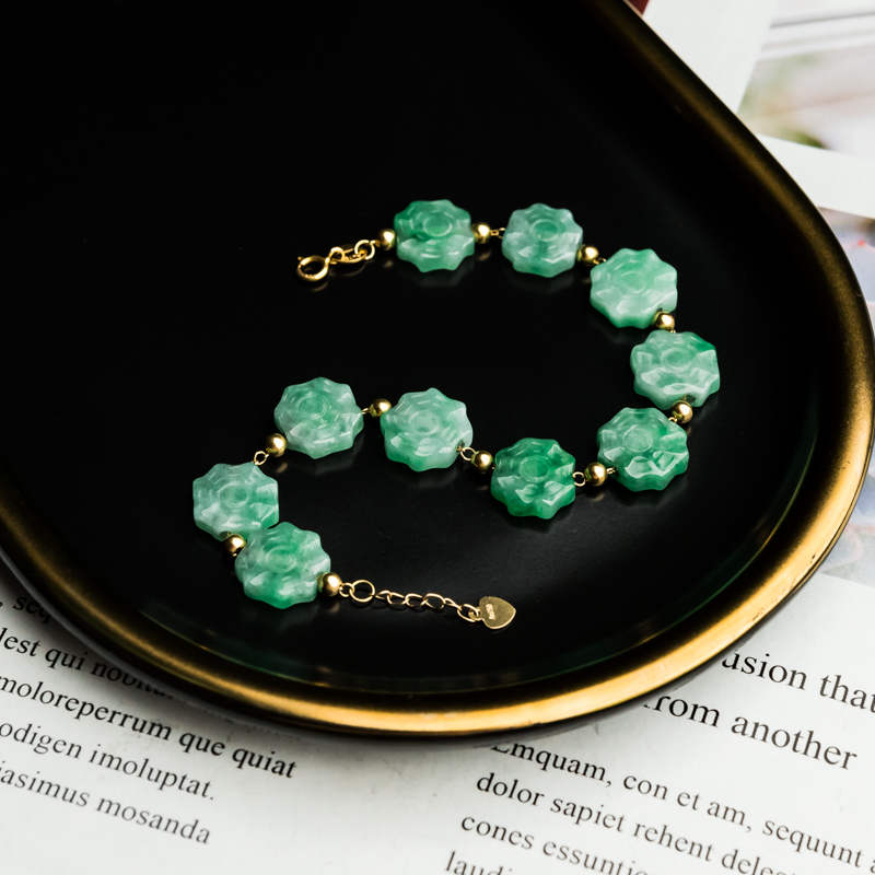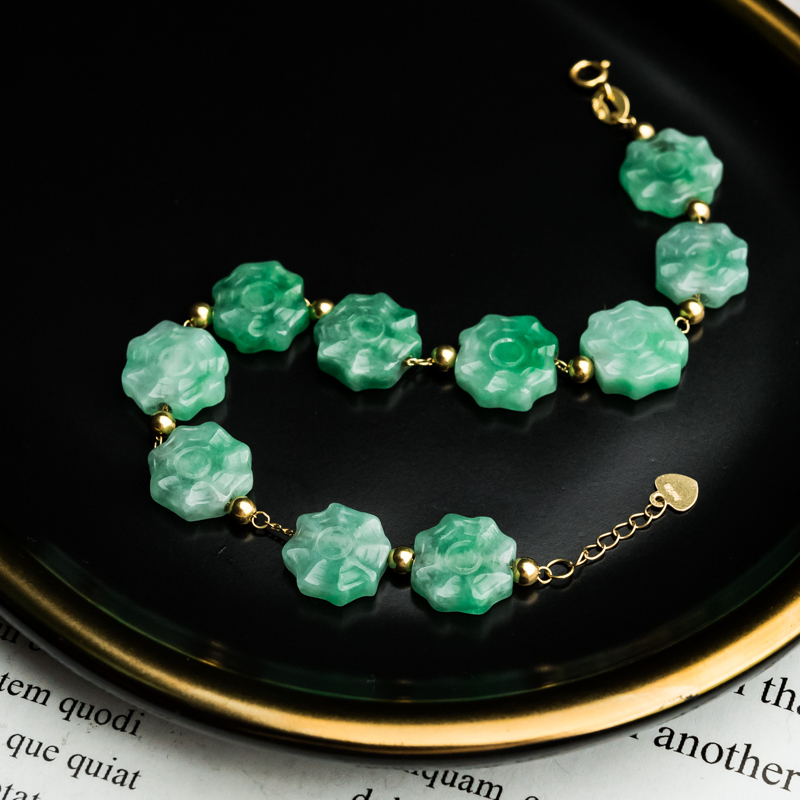 • 18K糯冰种翠绿翡翠手链